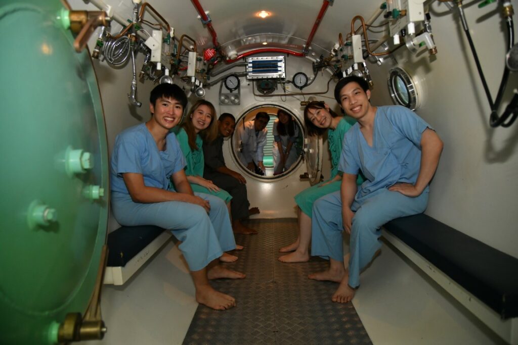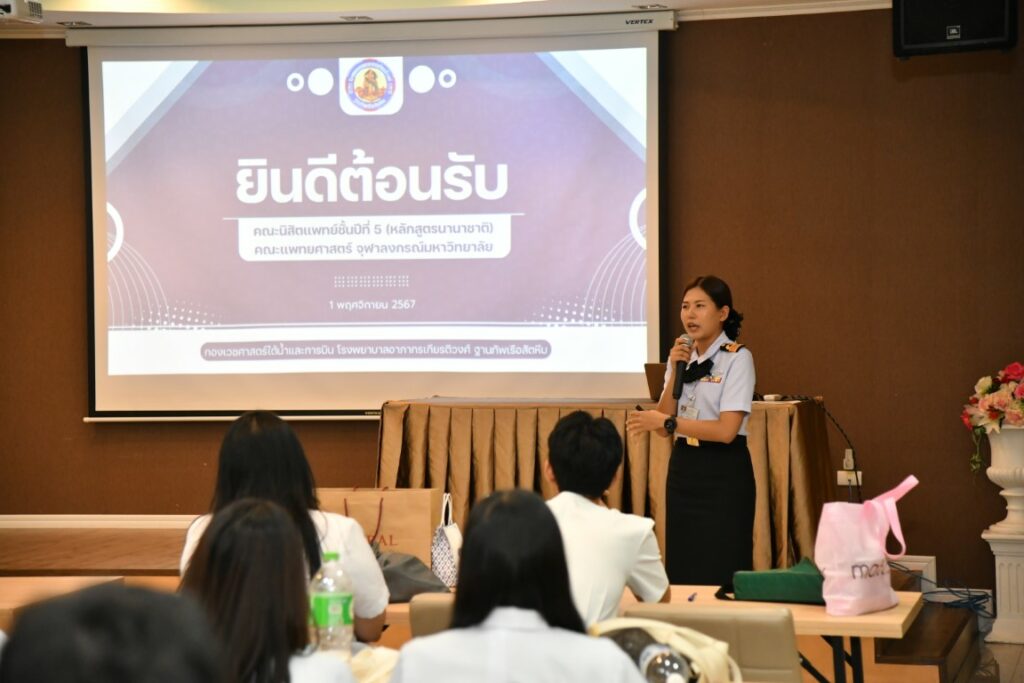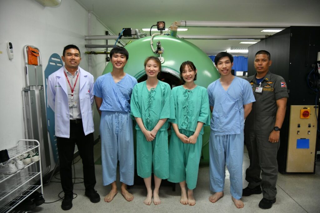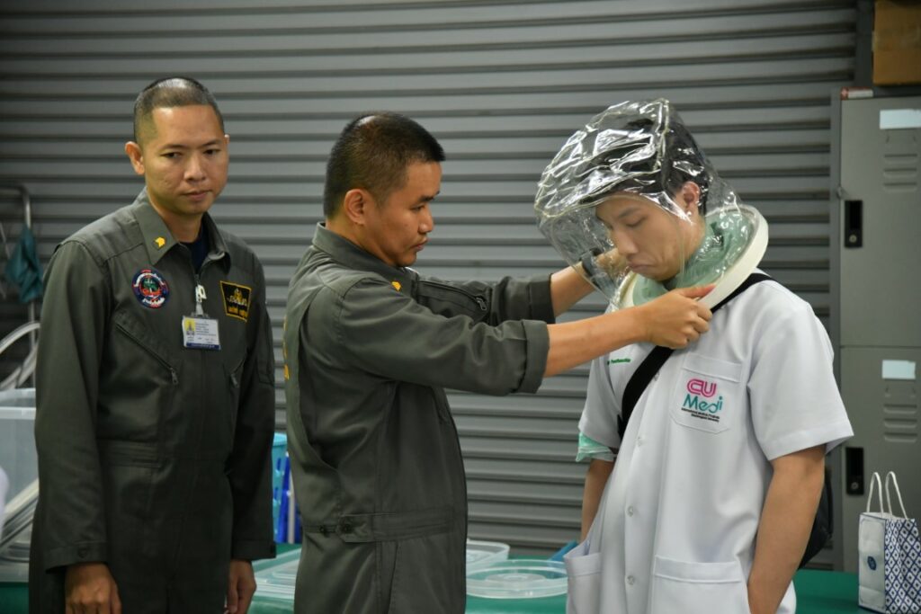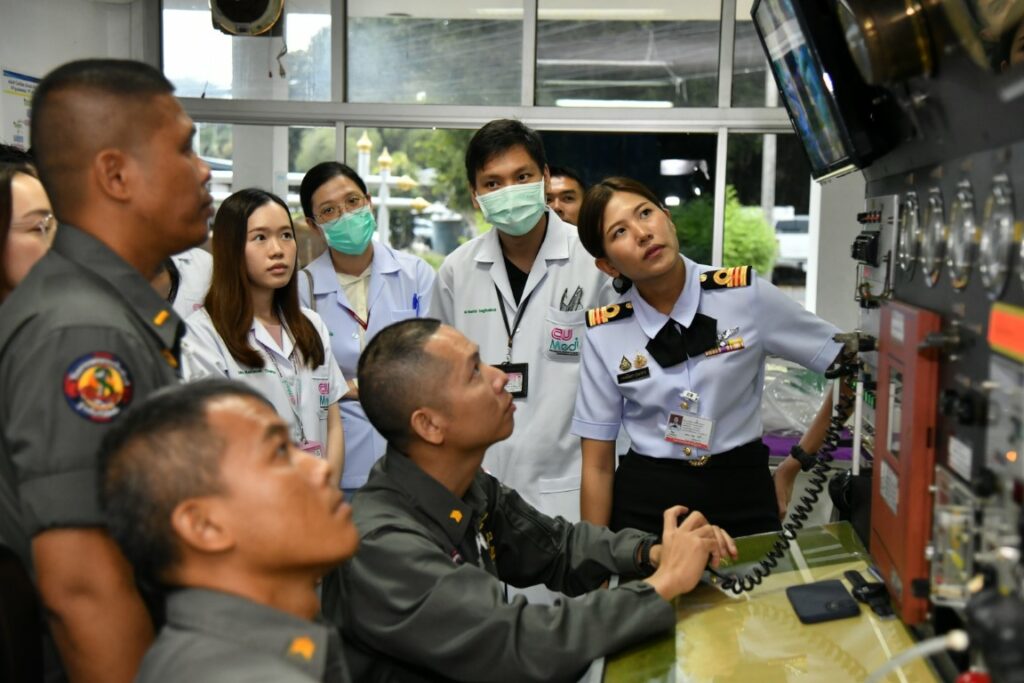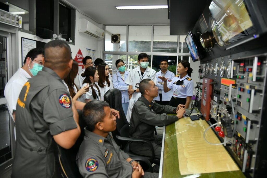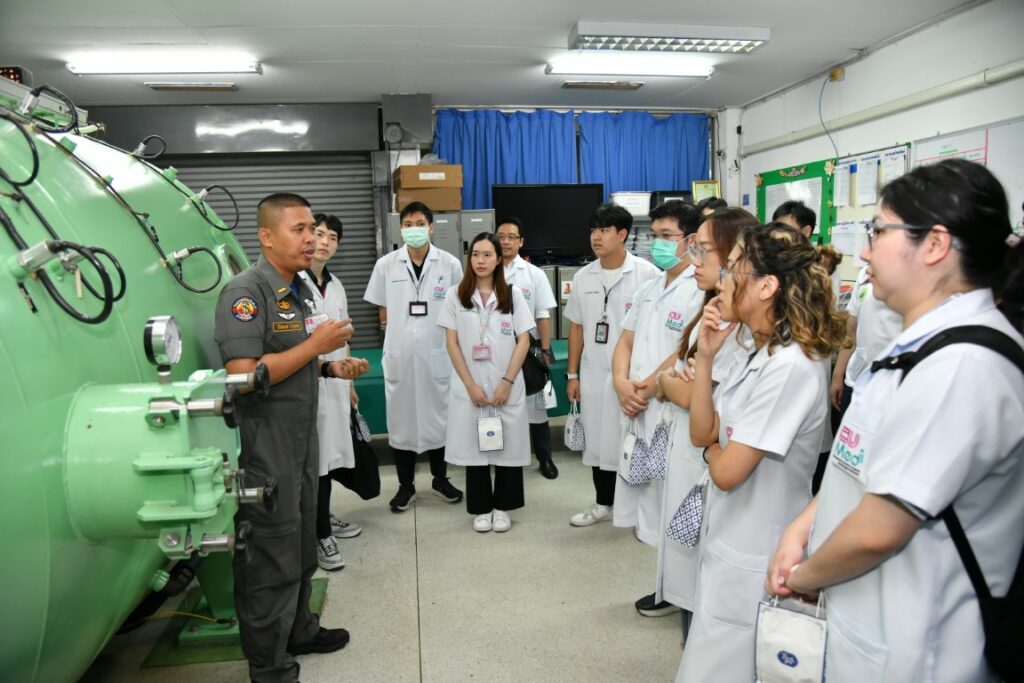 เมื่อ ๑ พ.ย.๖๗ น.อ.พรหมพิทักษ์ ไหว้พรหม หน.กวตบ.รพ.อาภากรเกียรติวงศ์ ฐท.สส. ให้การต้อนรับคณะนิสิตแพทย์ชั้นปีที่ ๕ (หลักสูตรนานาชาติ) คณะแพทย์ศาสตร์ จุฬาลงกรณ์มหาวิทยาลัย เข้าศึกษาดูงาน ห้องปรับแรงดันบรรยากาศสูง(Hyperbaric Chamber) เพื่อการรักษา รวมถึงได้นำตัวแทนของคณะเยี่ยมชมเข้าทดสอบการใช้งานจริง โดยมี น.ต.หญิง กานต์พิชชา ปุจฉาการ รอง หน.หน.กวตบ.รพ.อาภากรเกียรติวงศ์ ฐท.สส. ร.ต.วัชรพงษ์ บำรุงกลาง หน.มว.นิรภัยเวชกรรมการบิน แผนกเวชศาสตร์การบิน กวตบ.รพ.ฯ เป็นวิทยากรบรรยาย ณ กวตบ.รพ.อาภากรเกียรติวงศ์ ฐท.สส. / รพ.อาภากรเกียรติวงศ์ ฐท.สส. / By ข่าวผู้บังคับบัญชา จำนวนคนดู : 12