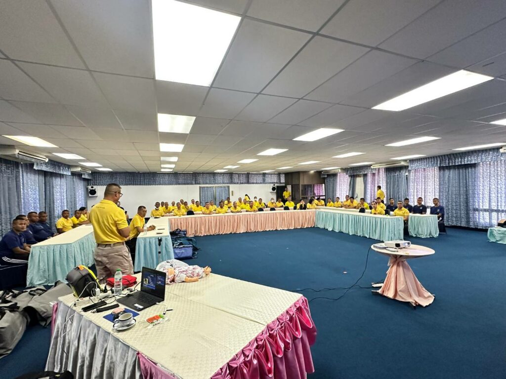 เมื่อ ๔ พ.ย.๖๗ กองนาวิกเวชกิจ รพ.อาภากรเกียรติวงศ์ ฐท.สส. สนับสนุนวิทยากรบรรยายให้ความรู้และฝึกอบรมการช่วยฟื้นคืนชีพขั้นพื้นฐาน (CPR) และการใช้เครื่องฟื้นคืนคลื่นหัวใจด้วยไฟฟ้าแบบอัตโนมัติ (AED) ให้แก่ กำลังพล กพช.พธ.ทร. ณ ห้องประชุม กพช.พธ.ทร. / รพ.อาภากรเกียรติวงศ์ ฐท.สส. / By ข่าวผู้บังคับบัญชา จำนวนคนดู : 7