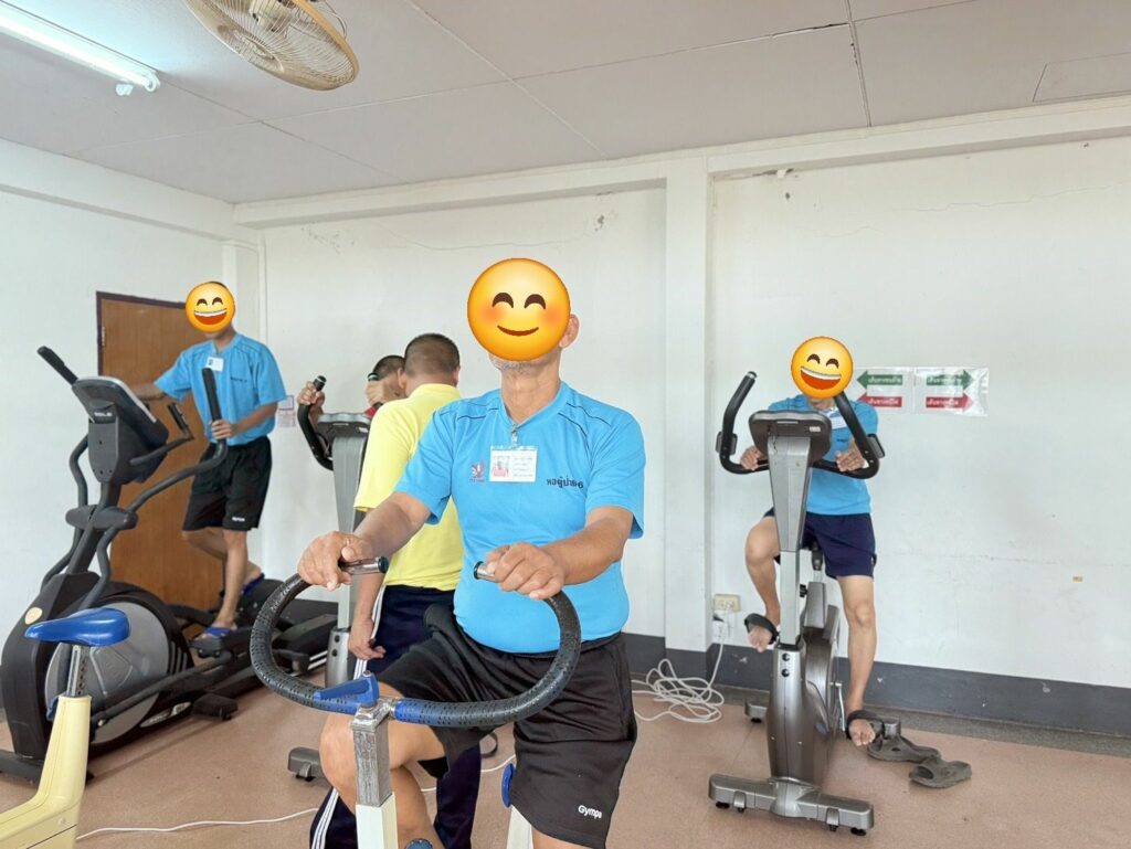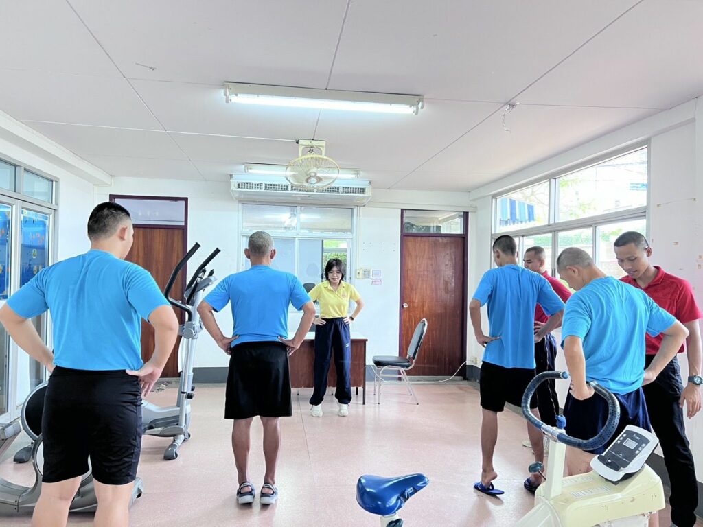 เมื่อ ๒๐ พ.ย.๖๗ แผนกทดสอบและพัฒนาสมรรถภาพ กองเวชกรรมป้องกัน ร่วมกับ หอผู้ป่วยจิตเวช กองรักษาพยาบาลผู้ป่วยใน รพ.อาภากรเกียรติวงศ์ ฐท.สส. จัดกิจกรรมกลุ่มนันทนาการ การออกกำลังกายสำหรับผู้ป่วย การออกกำลังกายแบบปั่นจักรยาน เพื่อเสริมสร้างกล้ามเนื้อ เพิ่มความแข็งแรงของกล้ามเนื้อและระบบการไหลเวียนโลหิต เป็นการวางแผนผู้ป่วยกลับสู่สังคม ลดภาวะเครียดและเฝ้าสังเกตุผู้ป่วย ณ ห้องพัฒนาสมรรถภาพกระดูกและกล้ามเนื้อ รพ.อาภากรเกียรติวงศ์ ฐท.สส. / รพ.อาภากรเกียรติวงศ์ ฐท.สส. / By ข่าวผู้บังคับบัญชา จำนวนคนดู : 6