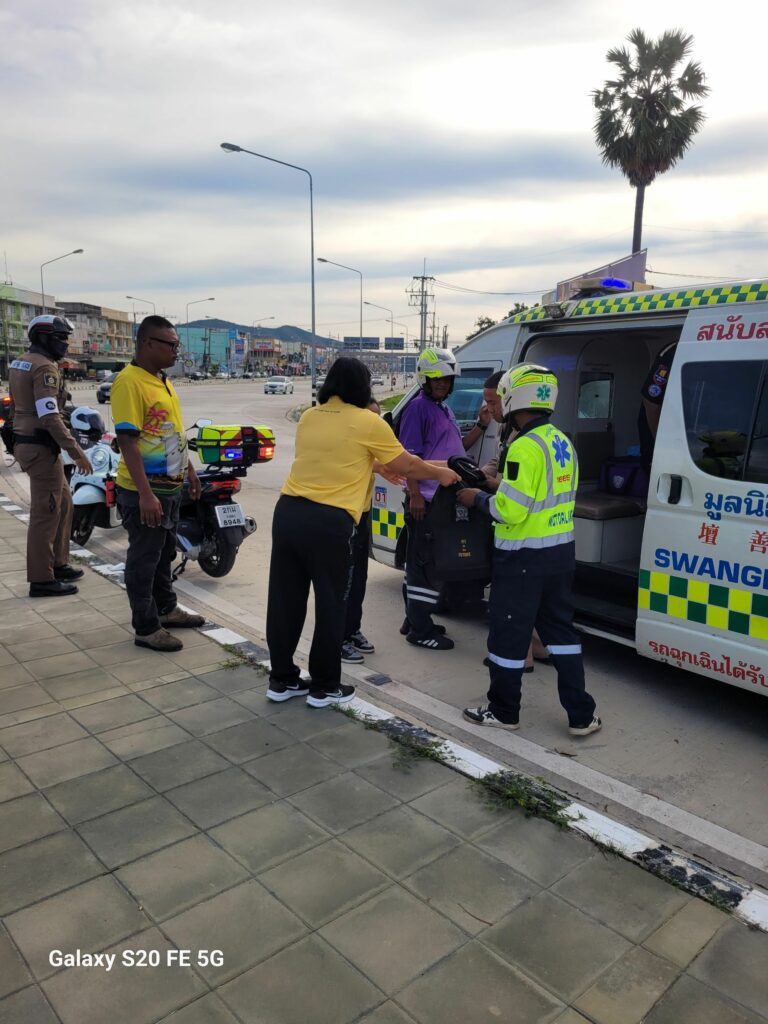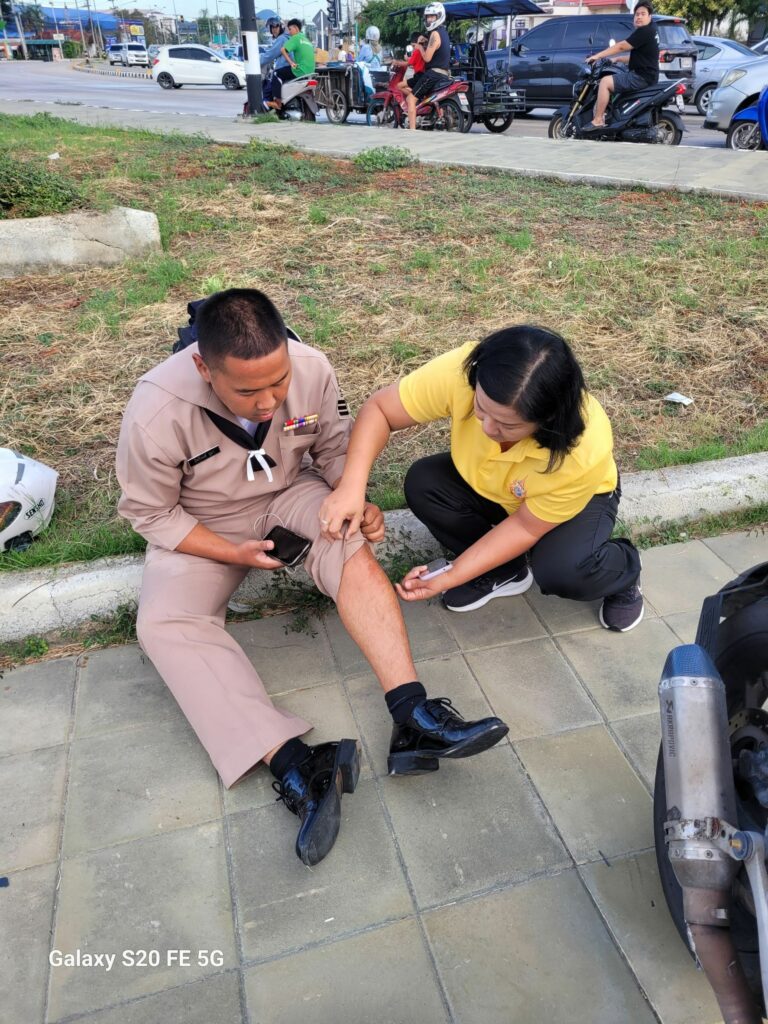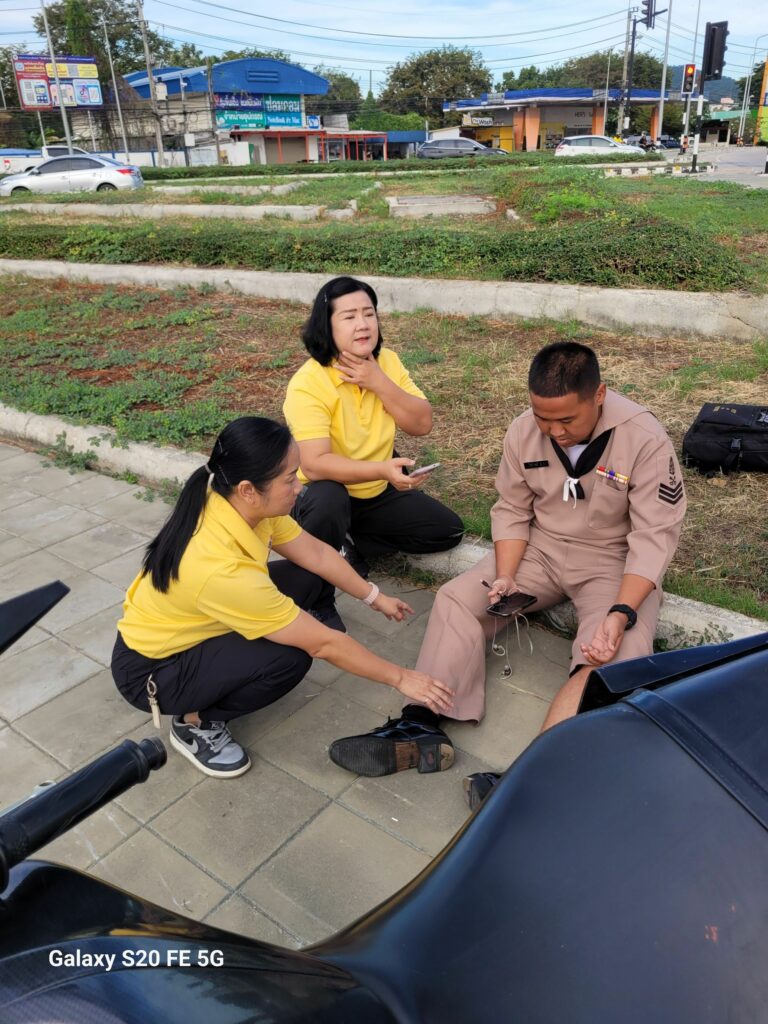 เมื่อ ๒๕ พ.ย.๖๗ ร.อ.หญิง มนีวรรณ สงวนทรัพย์ นพบ.แผนกจิตเวช กองสุขภาพจิต รพ.อาภากรเกียรติวงศ์ ฐท.สส. นพบ.แผนกบำบัดยาเสพติด กองสุขภาพจิต รพ.ฯ ได้พบข้าราชการเรือหลวงตากสินประสบอุบัติเหตุมอเตอร์ไซร์ ล้ม บริเวณแยกไฟแดงหนวดปลาหมึกขณะจะไปปฏิบัติงาน มีแผลถลอกบริเณใบหน้าด้านขวา และหัวเข่าทั้งสองข้าง จึงได้ เข้าทำการช่วยเหลือผู้ประสบอุบัติเหตุ จึงได้ทำการดูแลปฐมพยาบาลเบื้องต้น โทรแจ้ง ๑๖๖๙ ส่งผู้บาดเจ็บไปยังโรงพยาบาลอย่างปลอดภัย / รพ.อาภากรเกียรติวงศ์ ฐท.สส. / By ข่าวผู้บังคับบัญชา จำนวนคนดู : 8