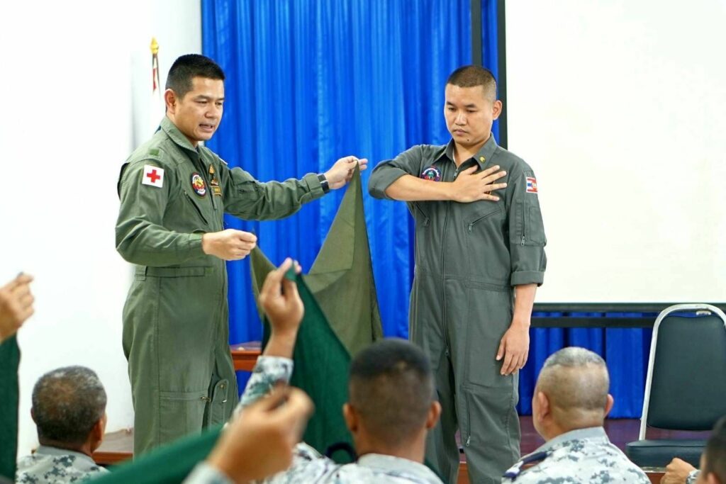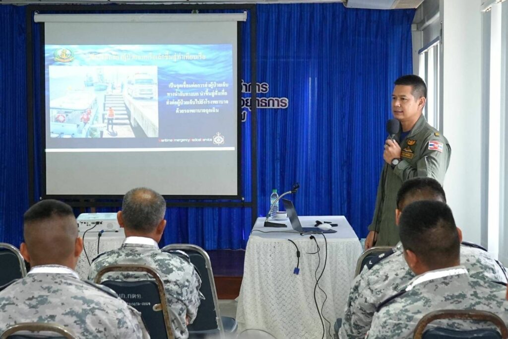 เมื่อ ๒๖ พ.ย.๖๗ น.ต.หญิง กานต์พิชชา ปุจฉาการ รอง หก.กวตบ.รพ.อาภากรเกียรติวงศ์ ฐท.สส. และคณะ สนับสนุนวิทยากรบรรยาย การฝึกปฏิบัติในหัวข้อเรื่อง “การปฐมพยาบาลผู้ประสบภัยในทะเล” ให้แก่กำลังพลใน สังกัด กตอ.พร. ณ อาคารเอนกประสงค์ กตอ.พร. / รพ.อาภากรเกียรติวงศ์ ฐท.สส. / By ข่าวผู้บังคับบัญชา จำนวนคนดู : 3