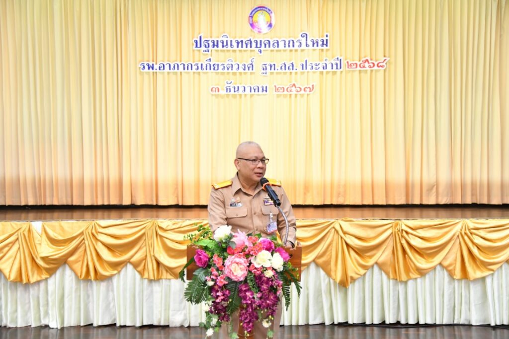 เมื่อ ๓ ธ.ค.๖๗ พล.ร.ต.ชาตรี เปี่ยมศิริ ผอ.รพ.อาภากรเกียรติวงศ์ ฐท.สส. เป็นประธานเปิดโครงการปฐมนิเทศบุคลากรใหม่ ประจำปี ๒๕๖๘ เพื่อให้บุคลากรใหม่ได้พบและรู้จักทีมผู้บริหาร รพ.ฯ รับทราบทิศทางการดำเนินงานนโยบายต่างๆ และวัฒนธรรมองค์กร สร้างความคุ้นเคยกับบุคลากรใหม่สาขาวิชาชีพอื่นๆ ที่ต้องปฏิบัติงานเกี่ยวข้องกันเพื่อเริ่มการทำงานอย่างมั่นใจ และมองเห็นอนาคตในการทำงานอยู่กับองค์กรได้ยั่งยืน ณ ห้องประชุมกฤษณจันทร์ กิจการสโมสร รพ.อาภากรเกียรติวงศ์ ฐท.สส. / รพ.อาภากรเกียรติวงศ์ ฐท.สส. / By ข่าวผู้บังคับบัญชา จำนวนคนดู : 8