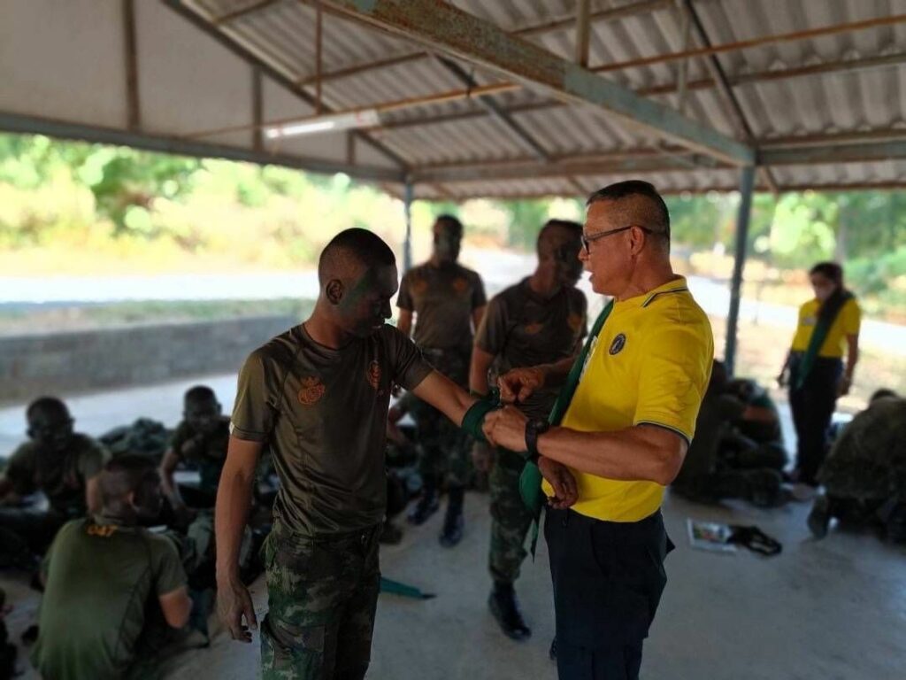 เมื่อ ๑๑ ธ.ค.๖๗ กองนาวิกเวชกิจ รพ.อาภากรเกียรติวงศ์ ฐท.สส. สนับสนุนวิทยากรบรรยายให้ความรู้การปฐมพยาบาลและการกู้ชีพขั้นพื้นฐาน ให้แก่ นรจ.นย. ชั้นปีที่ ๒ ณ สนามฝึกหมายเลข ๑๕ หาดยาว (คอกม้า) / รพ.อาภากรเกียรติวงศ์ ฐท.สส. / By ข่าวผู้บังคับบัญชา จำนวนคนดู : 4