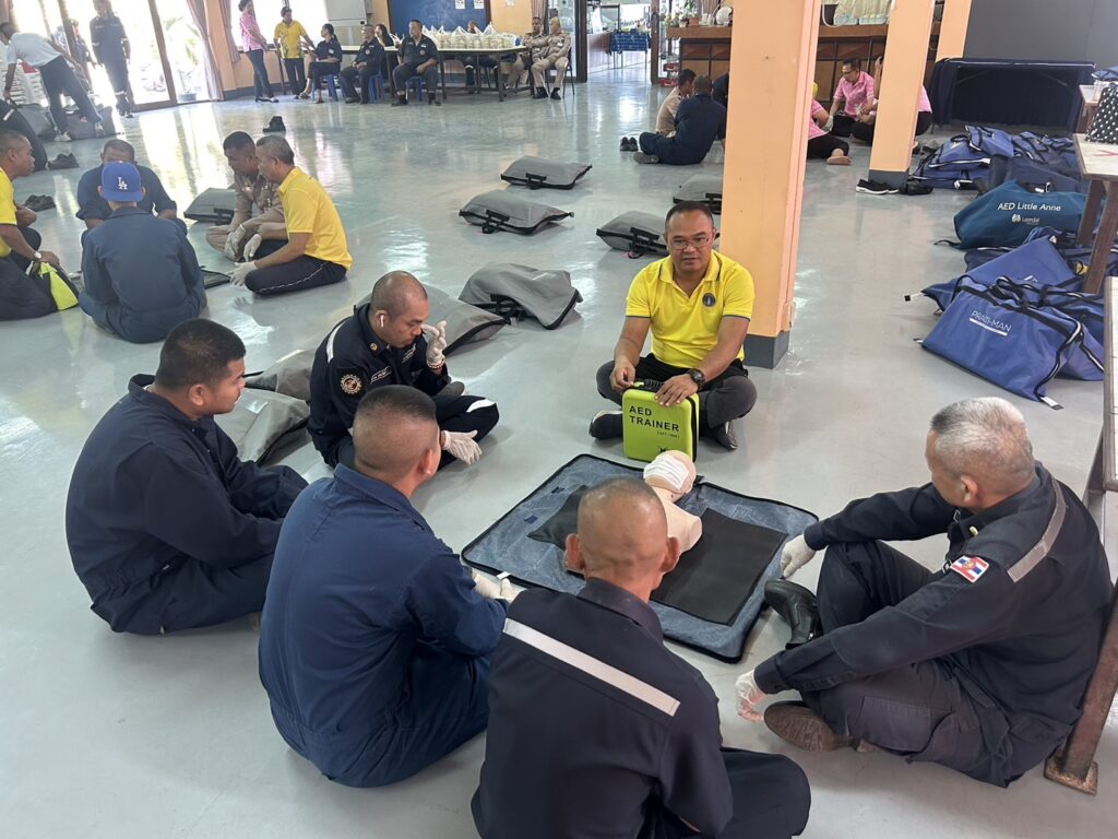 เมื่อ ๒๕ ธ.ค.๖๗ กองนาวิกเวชกิจ รพ.อาภากรเกียรติวงศ์ ฐท.สส. ให้การสนับสนุนวิทยากรบรรยายให้ความรู้ การช่วยฟื้นคืนชีพขั้นพื้นฐาน (CPR) และการใช้เครื่องฟื้นคืนคลื่นหัวใจด้วยไฟฟ้าแบบอัตโนมัติ (AED) ให้แก่ หน.เรือนแถวบ้านพักขอ กรง.ฐท.สส. ณ สโมสรริมน้ำ กรง.ฐท.สส. / รพ.อาภากรเกียรติวงศ์ ฐท.สส. / By ข่าวผู้บังคับบัญชา จำนวนคนดู : 2