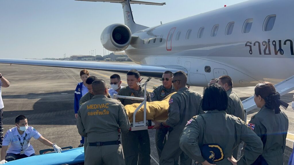 เมื่อ ๗ ม.ค.๖๘ รพ.อาภากรเกียรติวงศ์​ ฐท.สส. ให้การสนับสนุนการส่งกลับสายแพทย์ด้วยอากาศยาน สังกัด​ ร.ล.สมุย ป่วยด้วยโรคแผลในทางเดินอาหาร​ จาก​ รพ.สงขลา​ จว.สงขลา​ เพื่อมารับการรักษาต่อ​ที่​ รพ.สมเด็จพระนางเจ้าสิริกิติ์​ พร.