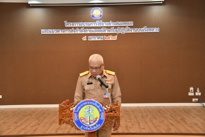 เมื่อ ๙ ม.ค.๖๘ พล.ร.ต.ชาตรี เปี่ยมศิริ ผอ.รพ.อาภากรเกียรติวงศ์ ฐท.สส. เป็นประธานกล่าวเปิดการอบรม “โครงการให้ความรู้การใช้ยาอย่างสมเหตุผล (Rational Drug Use) และแนวทางการส่งกำลังสายแพทย์ในเรือหลวง” ให้แก่กำลังพลสายแพทย์ที่ปฏิบัติงานบนเรือหลวง ณ ห้องประชุมลุมพิกานนท์ รพ.อาภากรเกียรติวงศ์ ฐท.สส.