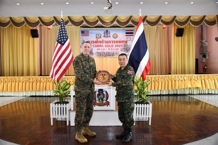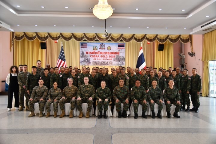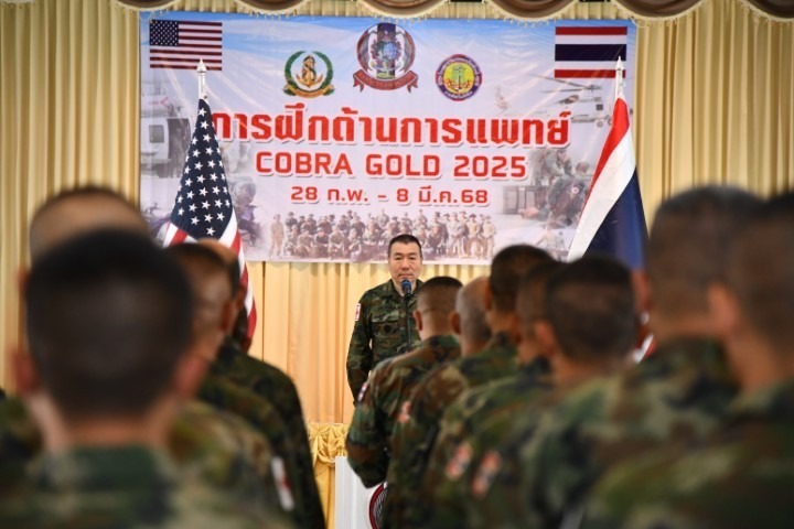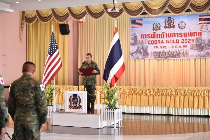 เมื่อ ๒๘ ก.พ.๖๘ น.อ.สุเชษฐ ตรรกธาดา รอง ผอ.รพ.อาภากรเกียรติวงศ์ ฐท.สส. เป็นประธานในพิธีเปิดการฝึกด้านการแพทย์ COBRA GOLD 2025 ซึ่งในการฝึกครั้งนี้ มีกำลังพลเข้าร่วมการฝึกจากหน่วยขึ้นตรงกรมแพทย์ทหารเรือ กำลังพลจากหน่วยแพทย์กองทัพเรือ และกำลังพลกองทัพเรือสหรัฐอเมริกา ณ ห้องประชุมกฤษณจันทร์ กิจการสโมสร รพ.อาภากรเกียรติวงศ์ ฐท.สส. / รพ.อาภากรเกียรติวงศ์ ฐท.สส. / By ข่าวผู้บังคับบัญชา จำนวนคนดู : 7