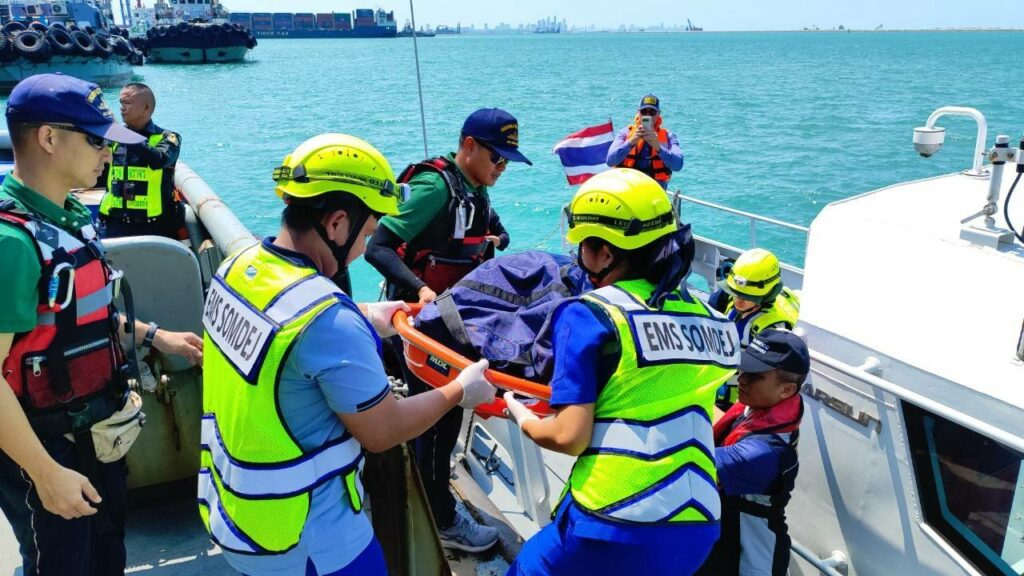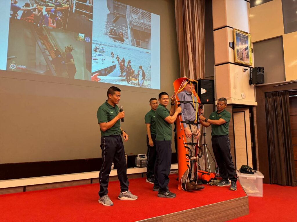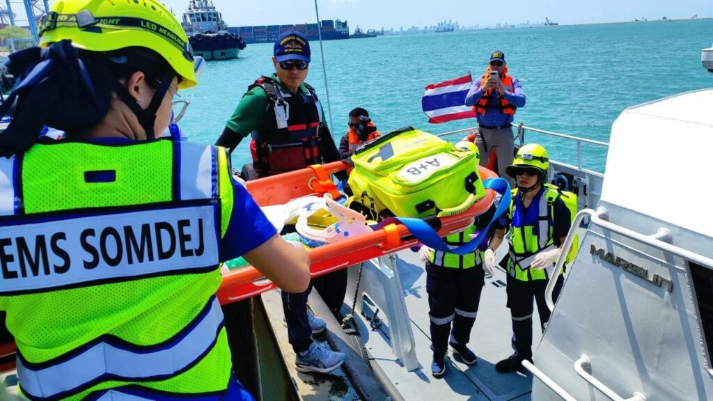 เมื่อ ๖ มี.ค.๖๘ กวตบ.รพ.อาภากรเกียรติวงศ์ ฐท.สส. สนับสนุนวิทยากรและร่วมซ้อมแผนสถานการณ์เคลื่อนย้ายผู้ป่วยทางทะเลโดยเรือ ให้แก่ รพ.สมเด็จพระบรมราชเทวี ณ ศรีราชา ณ ท่าเรือแหลมฉบัง อ.ศรีราชา จว.ชลบุรี / รพ.อาภากรเกียรติวงศ์ ฐท.สส. / By ข่าวผู้บังคับบัญชา จำนวนคนดู : 9