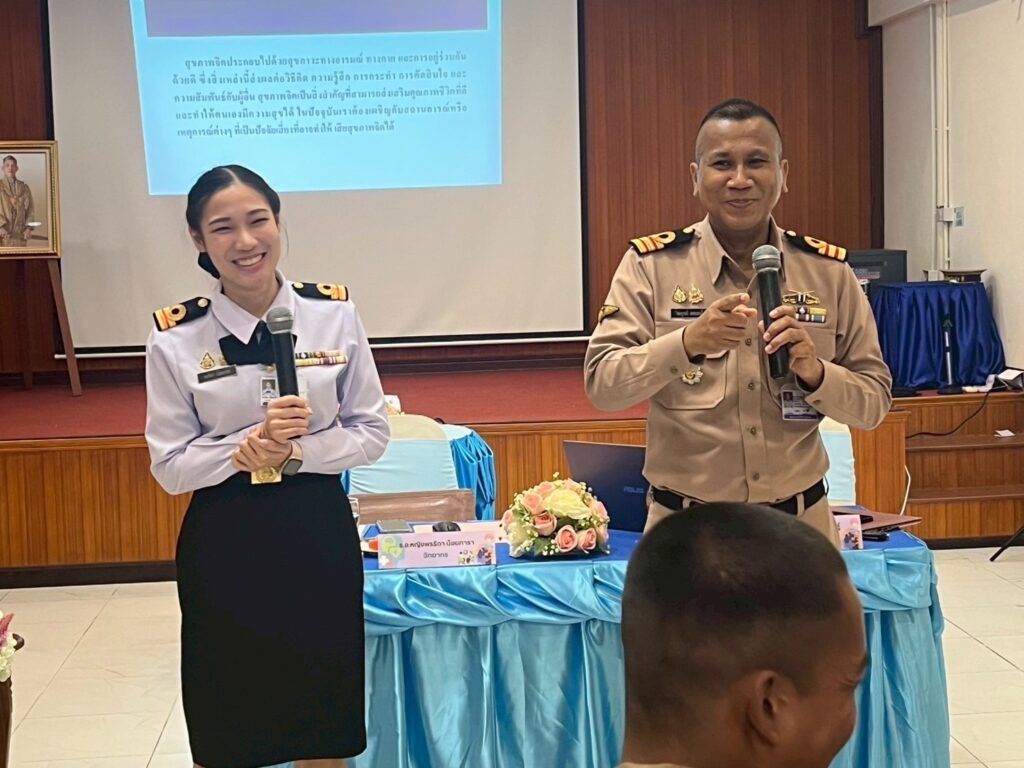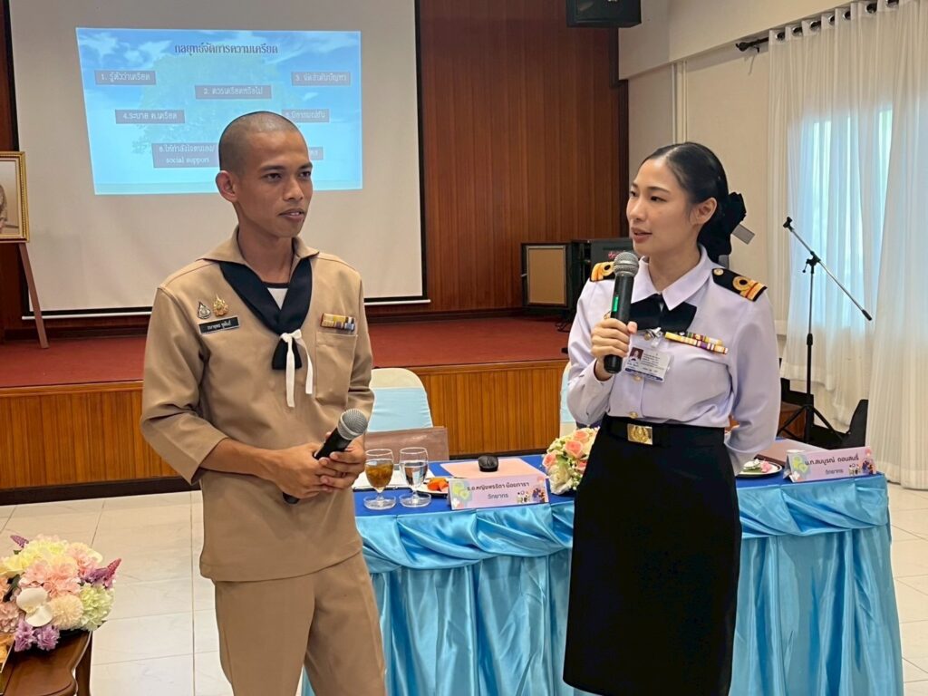 เมื่อ ๒๗ มี.ค.๖๘ น.ท.สมบูรณ์ ดอนสนธิ์ หน.จิตวิทยาทางการแพทย์ กองสุขภาพจิต รพ.อาภากรเกียรติวงศ์ ฐท.สส. ร.อ.หญิง พรธิดา น้อยภารา นายทหารจิตวิทยาทางการแพทย์ แผนกจิตวิทยาทางการแพทย์ กองสุขภาพจิต รพ.ฯ เป็นวิทยากรบรรยายเรื่อง “อบรมการดูแลสุขภาพจิตเพื่อสร้างสุข” ให้แก่ ทหารกองประจำการและข้าราชการฝ่ายปกครอง ณ ศูนย์ฝึกอบรมงานบริการจัดเลี้ยง ศกล.พธ.ทร. / รพ.อาภากรเกียรติวงศ์ ฐท.สส. / By ข่าวผู้บังคับบัญชา จำนวนคนดู : 16