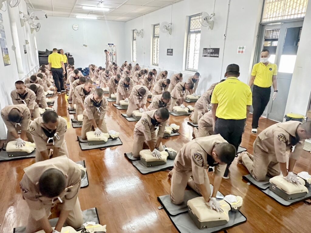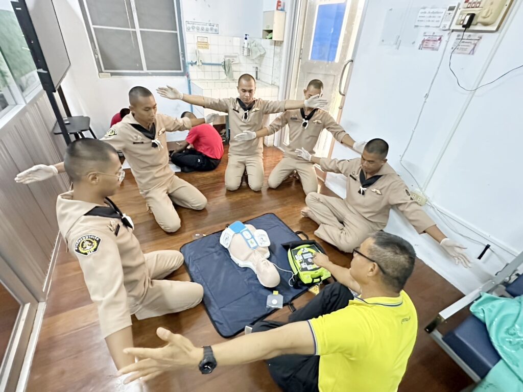 เมื่อ ๒ พ.ค.๖๘ กองนาวิกเวชกิจ รพ.อาภากรเกียรติวงศ์ ฐท.สส. สนับสนุนวิทยากร บรรยายให้ความรู้และฝึกอบรมการปฐมพยาบาลเบื้องต้น การช่วยฟื้นคืนชีพขั้นพื้นฐาน (CPR) และการใช้เครื่องฟื้นคืนคลื่นหัวใจด้วยไฟฟ้าแบบอัตโนมัติ (AED) แก่กำลังพลหลักสูตรเบื้องต้นเฉพาะเหล่าทหารสารวัตร รุ่นปี ๒๕๖๗ ผลัดที่ ๔ กรม สห.ทร. ณ ศูนย์ฝึกอบรมภาวะฉุกเฉินทางการแพทย์