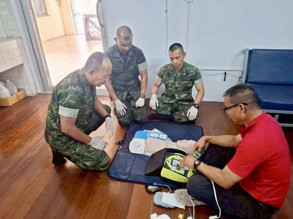 เมื่อ ๑ พ.ค.๖๘ กองนาวิกเวชกิจ รพ.อาภากรเกียรติวงศ์ ฐท.สส. สนับสนุนวิทยากรบรรยายให้ความรู้และฝึกอบรมการปฐมพยาบาล การช่วยฟื้นคืนชีพขั้นพื้นฐาน (CPR) และการใช้เครื่องฟื้นคืนคลื่นหัวใจด้วยไฟฟ้าแบบอัตโนมัติ (AED) ให้แก่กำลังพลกอง นรจ.นย. และครูปกครอง ณ ศูนย์ฝึกอบรมภาวะฉุกเฉินทางการแพทย์ / รพ.อาภากรเกียรติวงศ์ ฐท.สส. / By ข่าวผู้บังคับบัญชา จำนวนคนดู : 6