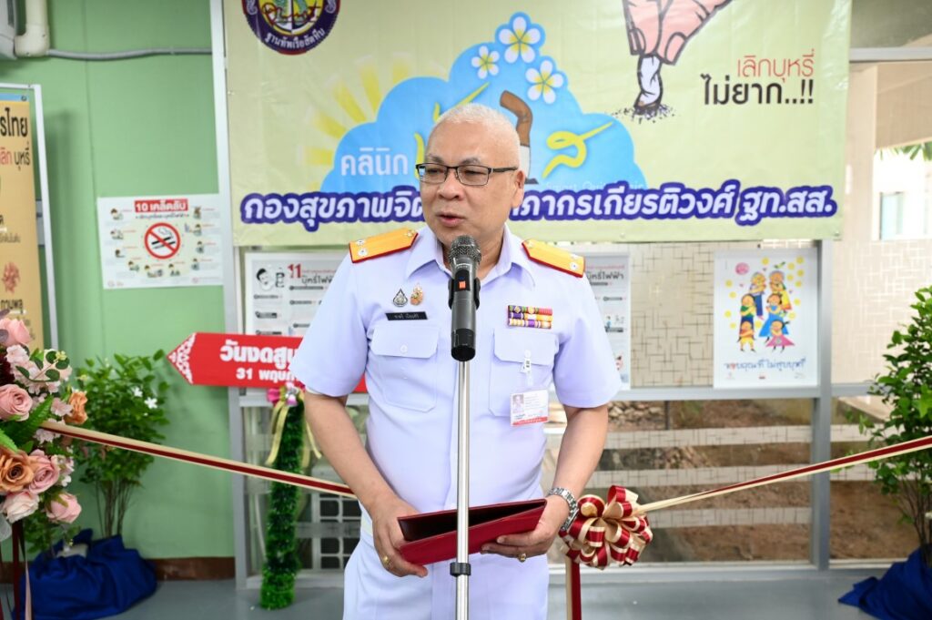 เมื่อ ๓๐ พ.ค.๖๘ พล.ร.ต.ชาตรี เปี่ยมศิริ ผอ.รพ.อาภากรเกียรติวงศ์ ฐท.สส. เป็นประธานในพิธีเปิด “คลินิกฟ้าใส” ซึ่งเป็นคลินิกบริการเลิกบุหรี่ เพื่อให้กำลังพล ทร. และประชาชนที่ต้องการเลิกบุหรี่ได้รับการดูแลอย่างครบวงจร one stop service เป็นความร่วมมือระหว่าง กองเวชกรรมป้องกัน กองการพยาบาล และกองสุขภาพจิต โดยทีมสหวิชาชีพ จิตแพทย์ แพทย์เวชศาสตร์ครอบครัว นักจิตวิทยาคลินิกและพยาบาลผู้เชี่ยวชาญ ณ กองสุขภาพจิต รพ.อาภากรเกียรติวงศ์ ฐท.สส. / รพ.อาภากรเกียรติวงศ์ ฐท.สส. / By ข่าวผู้บังคับบัญชา จำนวนคนดู : 7