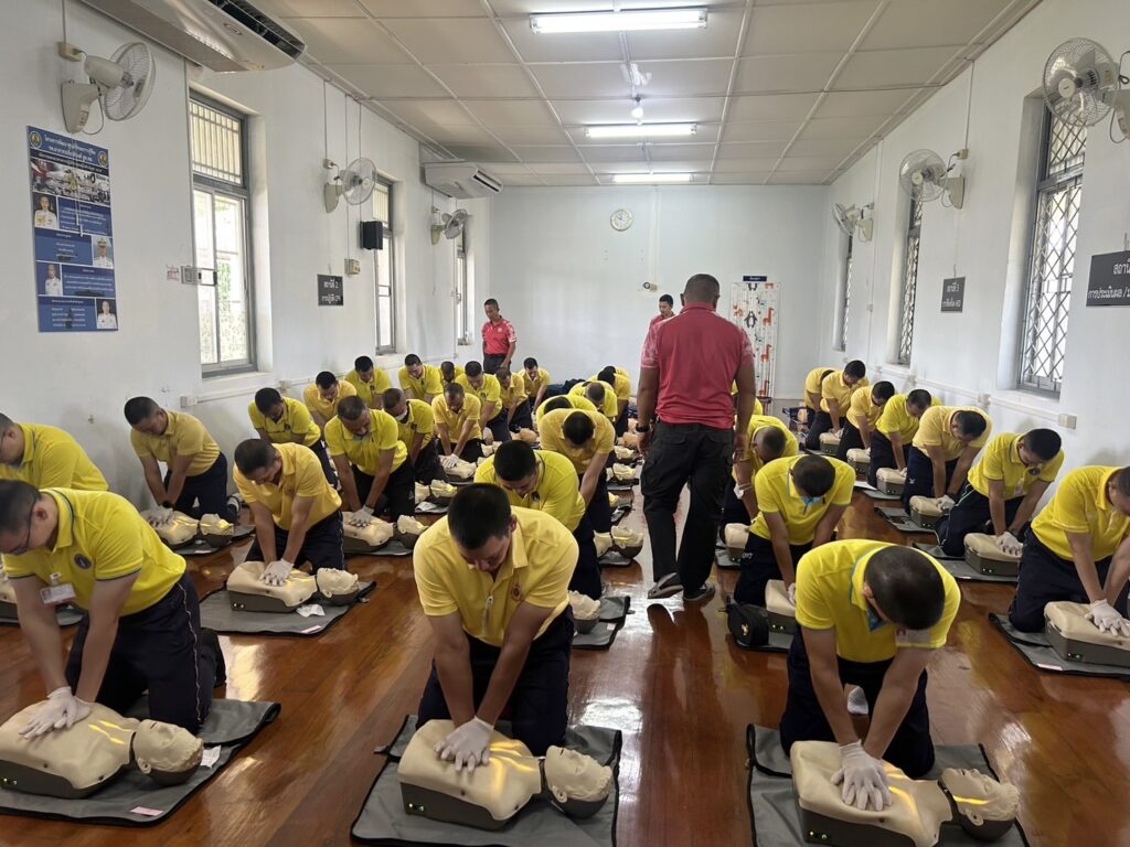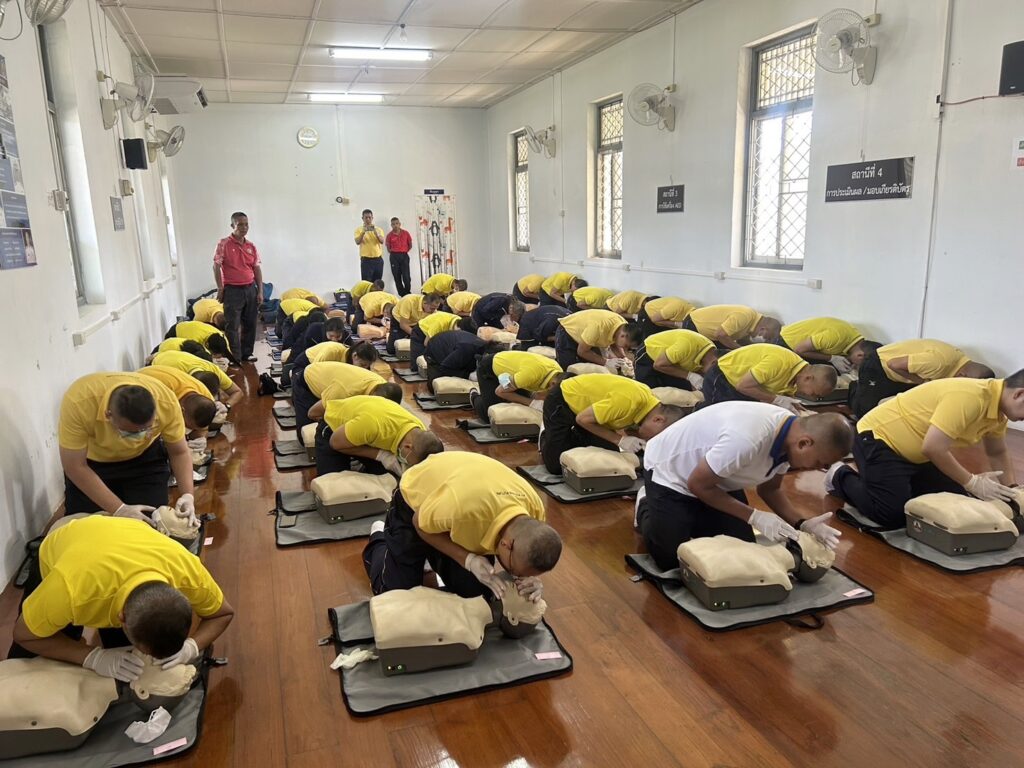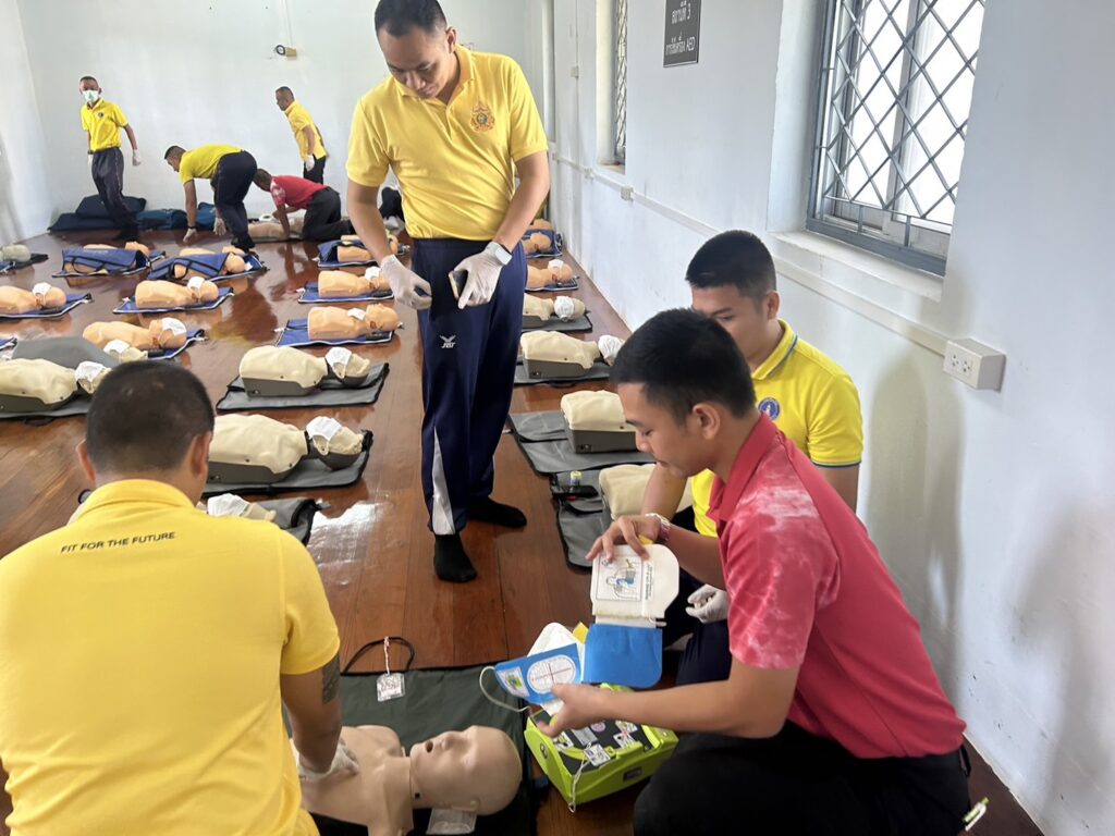 เมื่อ ๑๗ มิ.ย.๖๘ กองนาวิกเวชกิจ รพ.อาภากรเกียรติวงศ์ ฐท.สส. สนับสนุนวิทยากร บรรยายให้ความรู้และฝึกอบรมการปฐมพยาบาล การช่วยฟื้นคืนชีพขั้นพื้นฐาน (CPR) และการใช้เครื่องฟื้นคืนคลื่นหัวใจด้วยไฟฟ้าแบบอัตโนมัติ (AED) ให้แก่กำลังพลกรมแผนการช่าง กรมอู่ทหารเรือ (กผช.อร.) โดยขอรับการสนับสนุนหุ่นฝึกจาก พร. ณ ศูนย์ฝึกอบรมภาวะฉุกเฉินทางการแพทย์ รพ.อาภากรเกียรติวงศ์ ฐท.สส. / รพ.อาภากรเกียรติวงศ์ ฐท.สส. / By ข่าวผู้บังคับบัญชา จำนวนคนดู : 10