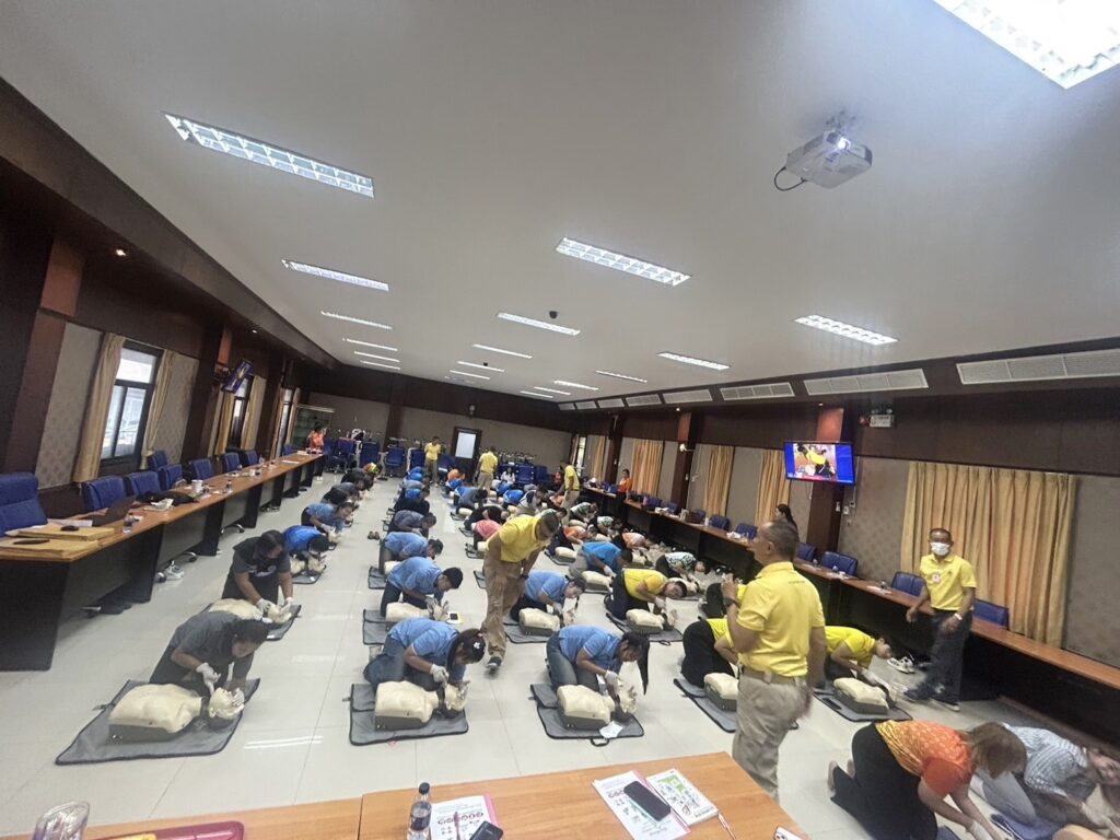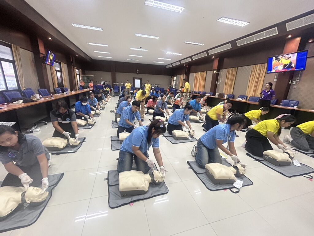 เมื่อ ๑๗ ก.ค.๖๘ กองนาวิกเวชกิจ รพ.อาภากรเกียรติวงศ์ ฐท.สส. สนับสนุนวิทยากร บรรยายให้ความรู้และฝึกอบรมการปฐมพยาบาล การช่วยฟื้นคืนชีพขั้นพื้นฐาน (CPR) และการใช้เครื่องฟื้นคืนคลื่นหัวใจด้วยไฟฟ้าแบบอัตโนมัติ (AED) ให้แก่กำลังพลอาสาสมัครสาธารณสุขประจำหมู่บ้านและประชาชนทั่วไป ณ เทศบาลตำบลตะเคียนเตี้ย อ.บางละมุง จว.ชลบุรี / รพ.อาภากรเกียรติวงศ์ ฐท.สส. / By ข่าวผู้บังคับบัญชา จำนวนคนดู : 0
