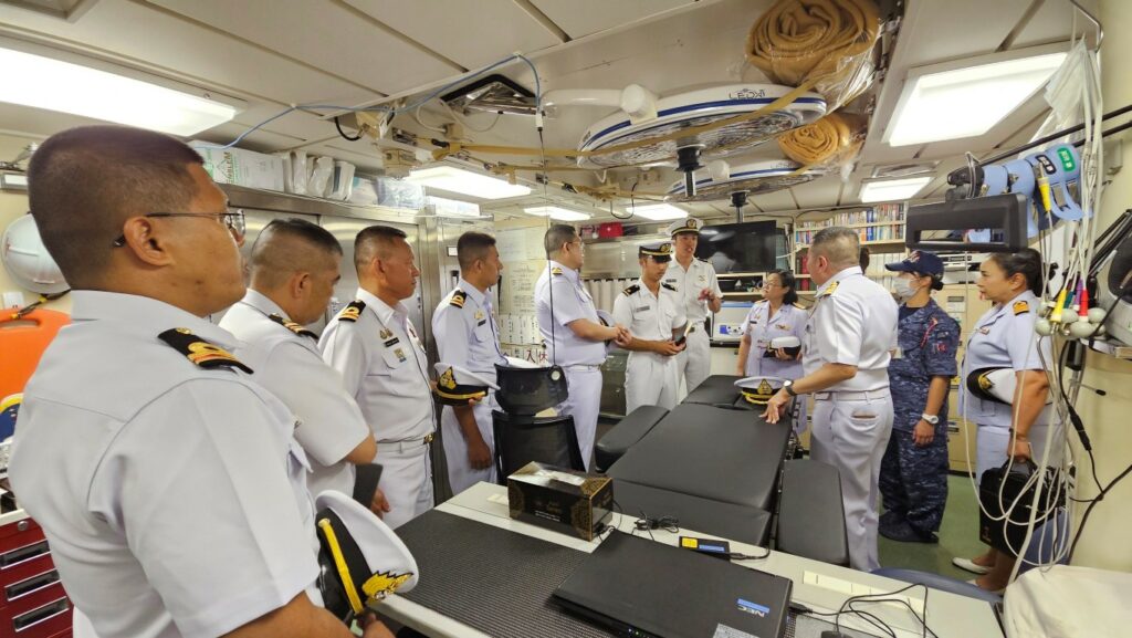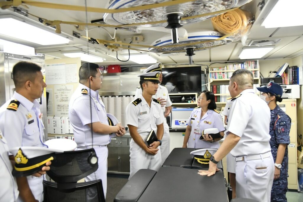 เมื่อ ๒๑ ก.ค.๖๘ น.อ.สุเชษฐ  ตรรกธาดา รอง ผอ.รพ.อาภากรเกียรติวงศ์ ฐท.สส. นำกำลังพล รพ.ฯ เยี่ยมชมการบริการทางการแพทย์ของเรือกองกำลังป้องกันตัวเองทางทะเลญี่ปุ่น JS Asahi ณ​ ท่าเรือจุกเสม็ด การท่าเรือสัตหีบ ฐานทัพเรือสัตหีบ (ทจม.กทส.ฐท.สส.)