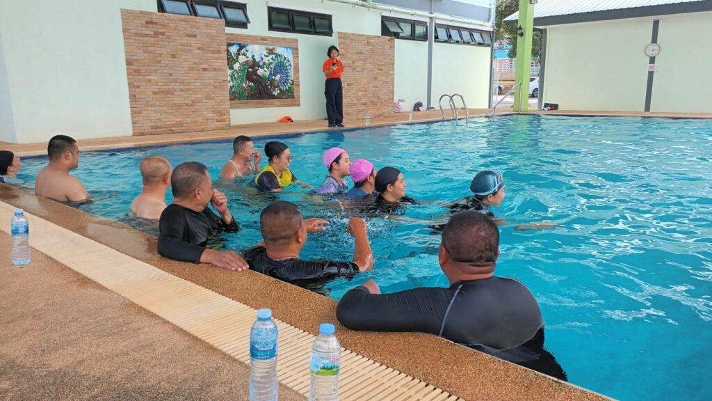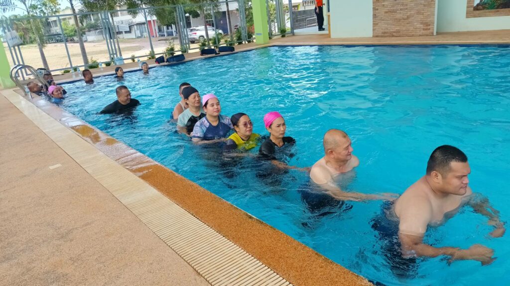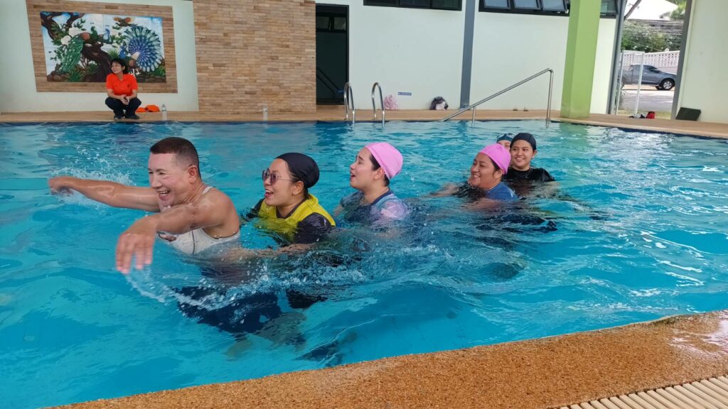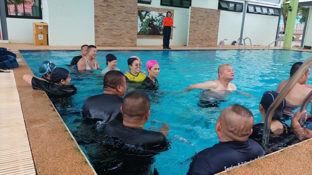 เมื่อ ๗ ส.ค.๖๘ แผนกสร้างเสริมสุขภาพ กองเวชกรรมป้องกัน รพ.อาภากรเกียรติวงศ์ ฐท.สส. จัดกิจกรรมออกกำลังกายในน้ำ งป.๖๘ สำหรับผู้ที่มีค่า BMI เกินและมีข้อจำกัดในการออกกำลังกายบนพื้นราบให้แก่กำลังพลที่สนใจ เข้าร่วมกิจกรรมฯ พื้นที่เทศบาลตำบลเขตรอุดมศักดิ์ โดยมี นักวิทยาศาสตร์การกีฬานำออกกำลังกาย ณ สระว่ายน้ำอาคารรักษ์สุขภาพเฉลิมพระเกียรติ รพ.ฯ / รพ.อาภากรเกียรติวงศ์ ฐท.สส. / By ข่าวผู้บังคับบัญชา จำนวนคนดู : 0