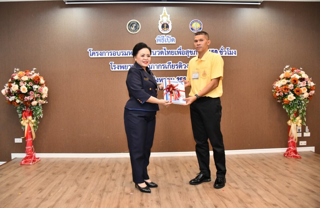 เมื่อ ๒๖ ส.ค.๖๘ พล.ร.ต.หญิง ดร.ทพญ. จีระวัฒน์ กฤษณพันธ์ ว่องวิทย์ นายกสมาคมภริยาทหารเรือ เป็นประธานเปิดโครงการอบรมผู้ช่วยแพทย์แผนไทย หลักสูตรนวดไทยเพื่อสุขภาพ ๑๕๐ ชั่วโมง รุ่นที่ ๑ ณ ห้องประชุมลุมพิกานนท์ รพ.อาภากรเกียรติวงศ์ ฐท.สส. อ.สัตหีบ จว.ชลบุรี / รพ.อาภากรเกียรติวงศ์ ฐท.สส. / By ข่าวผู้บังคับบัญชา จำนวนคนดู : 0