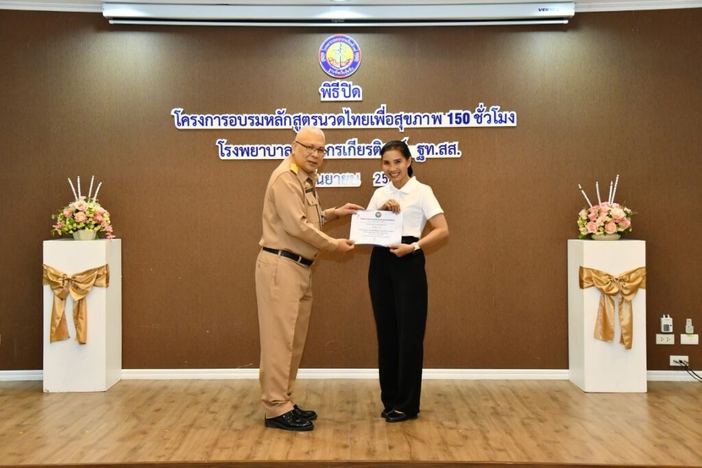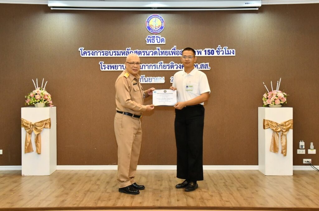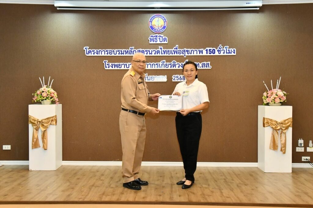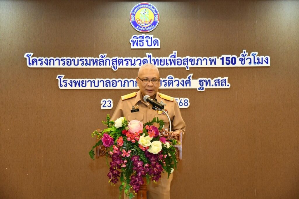 เมื่อ ๒๓ ก.ย.๖๘ พล.ร.ต.ชาตรี เปี่ยมศิริ ผอ.รพ.อาภากรเกียรติวงศ์ ฐท.สส.เป็นประธานในพิธีปิดโครงการอบรมหลักสูตรนวดไทยเพื่อสุขภาพ ๑๕๐ ชั่วโมง รุ่นที่ ๑ พร้อมมอบใประกาศนียบัตรและกล่าวให้โอวาทแก่ผู้เข้ารับการอบรม ณ ห้องประชุมลุมพิกานนท์ รพ.ฯ / รพ.อาภากรเกียรติวงศ์ ฐท.สส. / By ข่าวผู้บังคับบัญชา จำนวนคนดู : 0