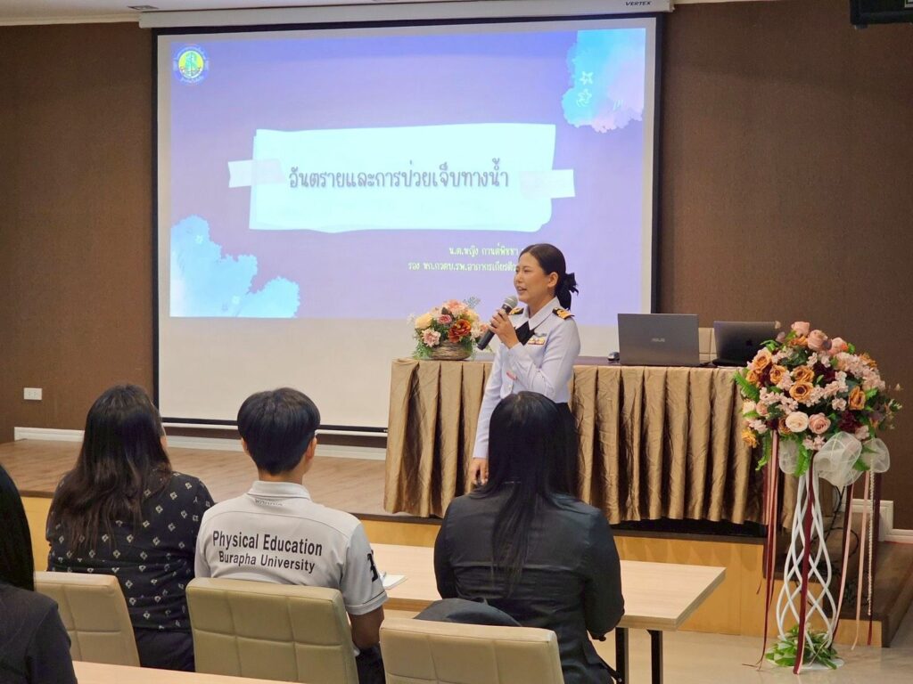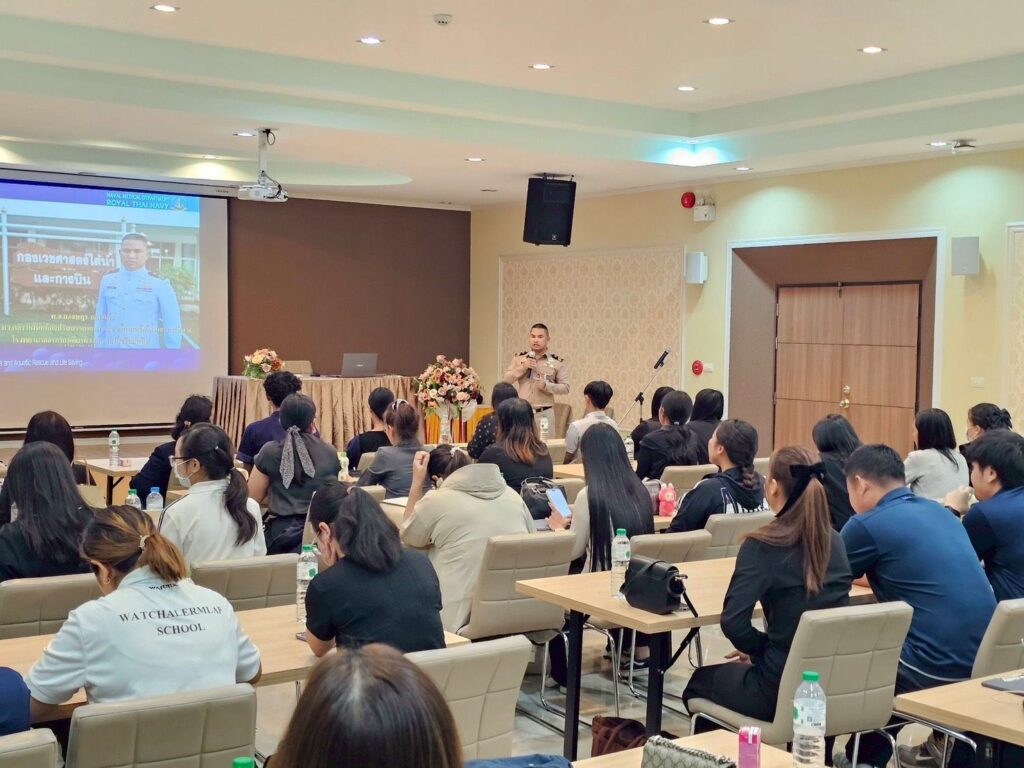 เมื่อ ๗ พ.ย.๖๘ กองเวชศาสตร์ใต้น้ำและการบิน รพ.อาภากรเกียรติวงศ์ ฐท.สส. นำโดย น.อ.ธีรศักดิ์ มหามงคล หน.กวตบ.รพ.ฯ เป็นผู้แทน ผอ.รพ.ฯ ให้การต้อนรับคณะศึกษาดูงานจากคณะพยาบาลศาสตร์มหาวิทยาลัยบูรพา โดยนำผู้เข้าร่วมโครงการหลักสูตรปฏิบัติการพัฒนาชุดทักษะสำหรับครูในสังกัดสำนักงานเขตพื้นที่การศึกษาประถมศึกษาชลบุรี เขต ๑ รับฟังบรรยายความรู้และฝึกทักษะเรื่องการกู้ชีพและช่วยชีวิตทางน้ำ ณ กวตบ.รพ.ฯ / รพ.อาภากรเกียรติวงศ์ ฐท.สส. / By ข่าวผู้บังคับบัญชา จำนวนคนดู : 0