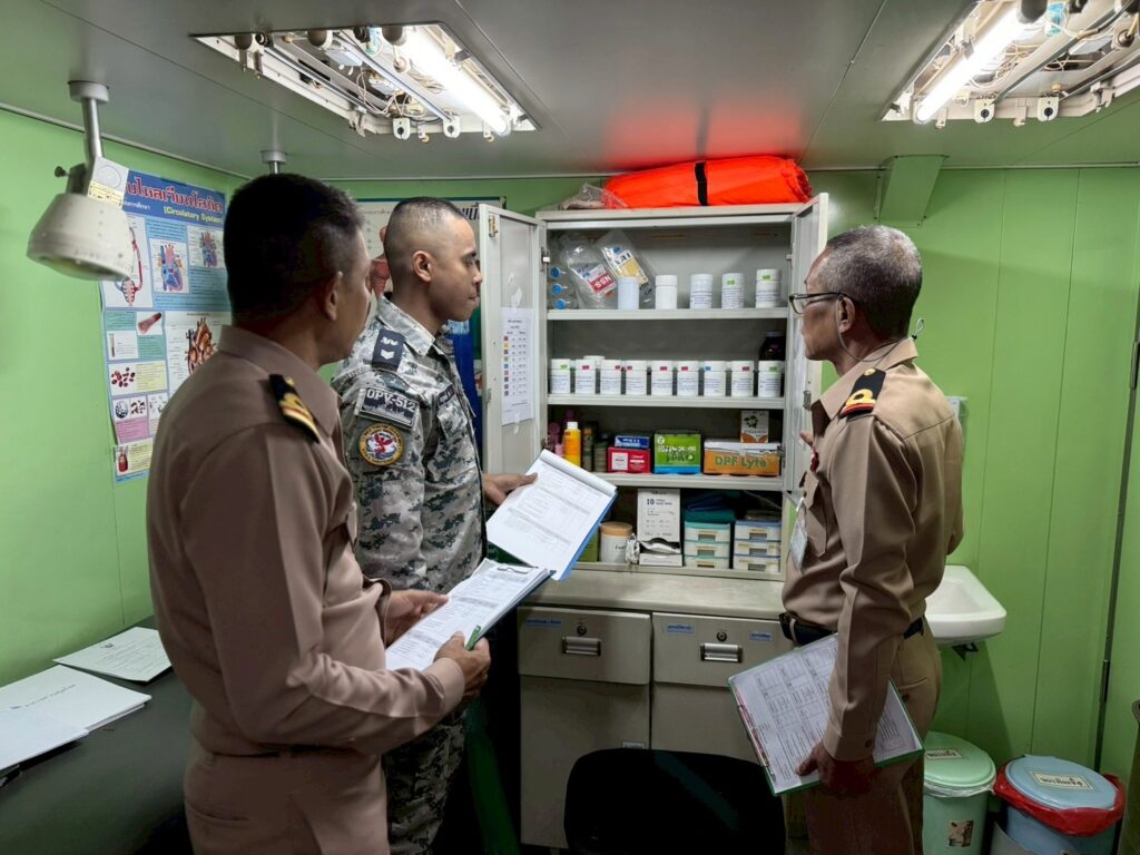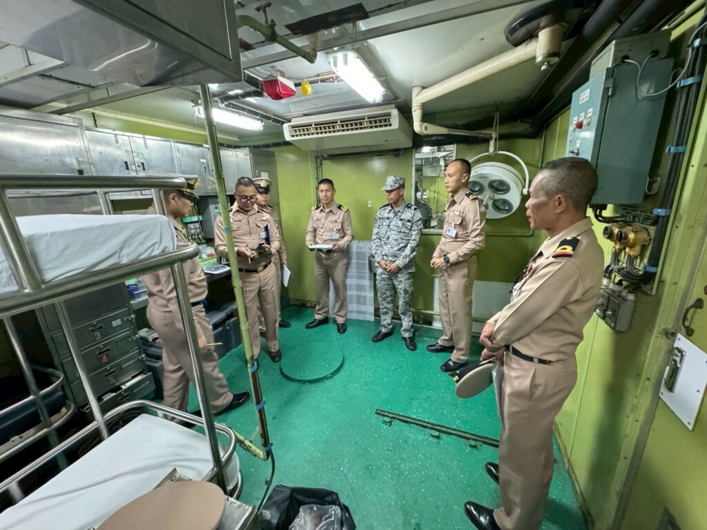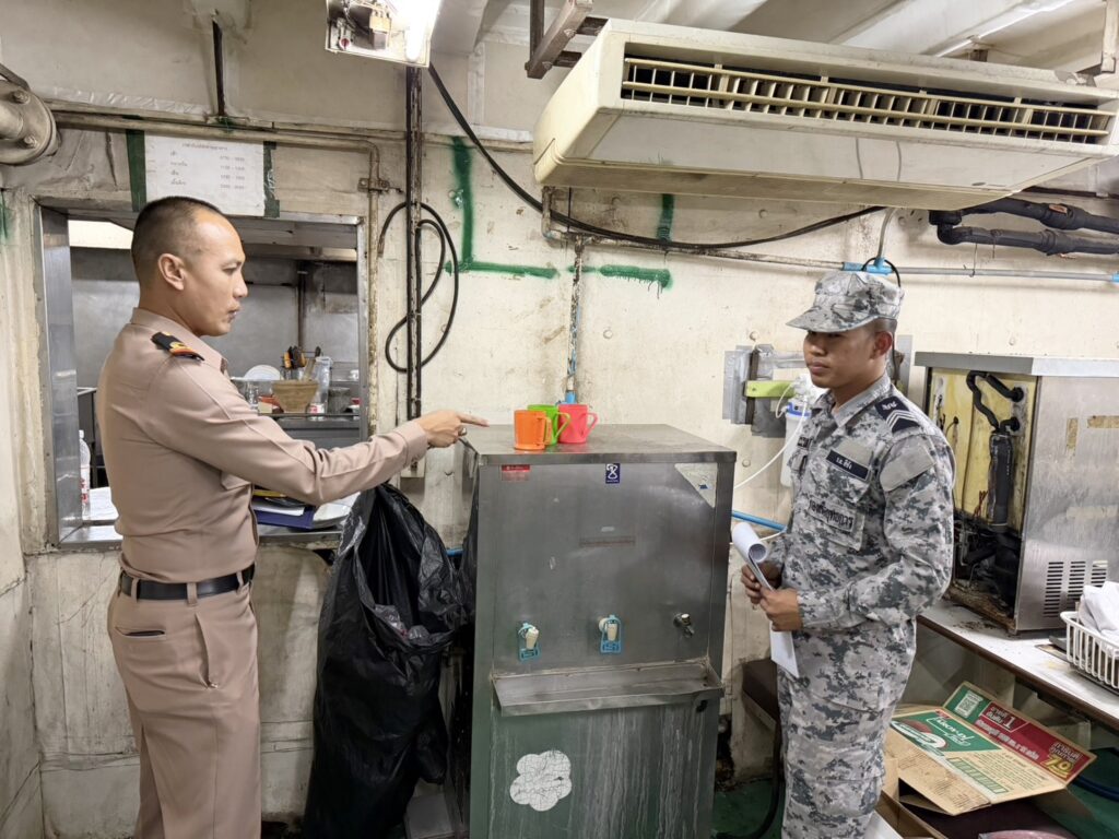 เมื่อ ๒๘ พ.ย.๖๘ แผนกป้องกันโรคและภัยสุขภาพ (งานอนามัยสิ่งแวดล้อม) กกป.รพ.อาภากรเกียรติวงศ์ ฐท.สส. ให้การสนับสนุน จนท. ในการตรวจความพร้อมของเรือสังกัด กร. จำนวน ๕ ลำ ดังนี้ ร.ล.นราธิวาส ร.ล.ประจวบคีรีขันธ์ กตอ.กร. ร.ล. สีชัง กยพ.กร. เรือ ต.๑๑๒ และเรือ ต.๒๖๓ กยฝ.กร. โดยเป็นการตรวจสภาพโดยทั่วไปของเรือ ระบบสาธารณูปโภค การสุขาภิบาลอาหาร การบริการทางการแพทย์ พร้อมให้คำแนะนำในการปรับปรุงแก้ไขให้มีความเหมาะสมต่อการปฏิบัติงาน และสุขอนามัยของกำลังพลในเรือ ณ ท่าเทียบเรือแหลมเทียน กทส.ฐท.สส. / รพ.อาภากรเกียรติวงศ์ ฐท.สส. / By ข่าวผู้บังคับบัญชา จำนวนคนดู : 0