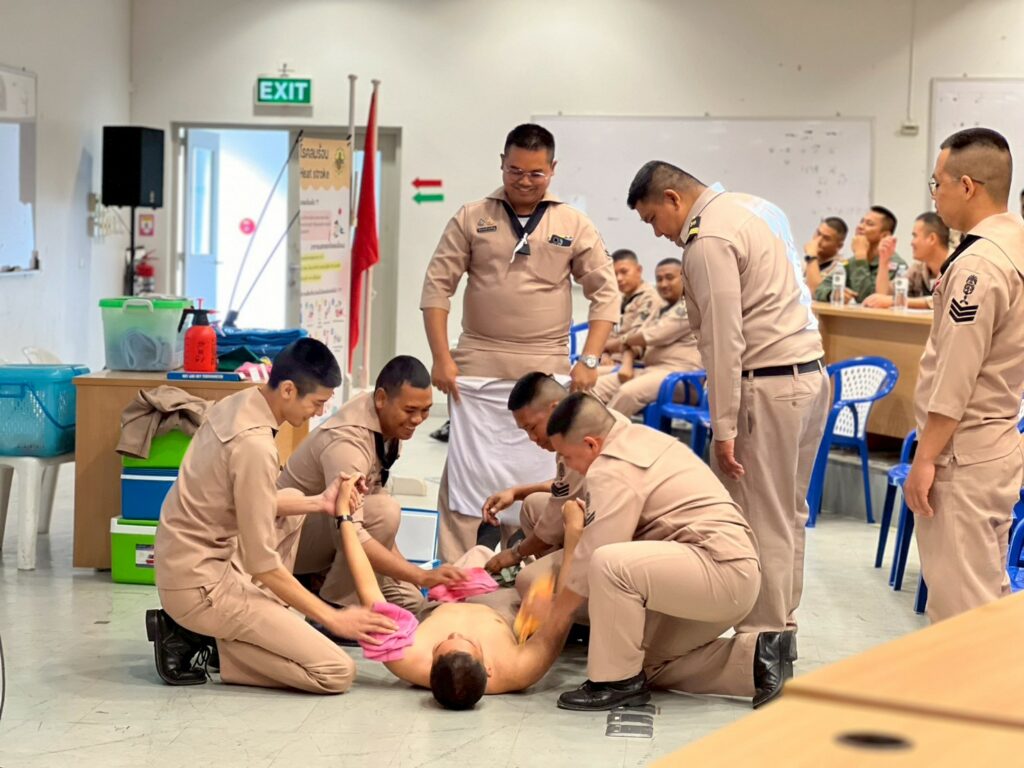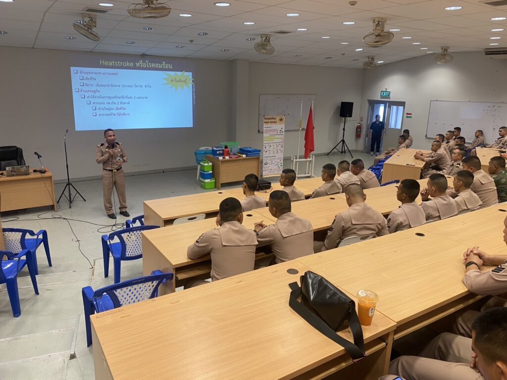 เมื่อ ๑๒ ธ.ค.๖๘ แผนกอาชีวอนามัย กกป.รพ.อาภากรเกียรติวงศ์ ฐท.สส. ดำเนินการอบรมให้ความรู้เรื่องอันตรายจากความร้อน (Heat injuries ) ให้แก่ กำลังพล กบร.กร. ภายใต้โครงการเสริมสร้างความรู้ความเข้าใจในการเฝ้าระวังป้องกันอันตรายจากความร้อน (Heat Injury) ให้กับกำลังพลในกองพันสวนสนามของหน่วยต่างๆ ในพิธีกระทำสัตย์ปฏิญาณตนต่อธงชัยเฉลิมพล ประจำปี ๒๕๖๙ เพื่อให้กําลังพลสามารถปฏิบัติตามมาตรการเฝ้าระวังและป้องกันอันตรายจากความร้อนในระหว่างการฝึกซ้อมสวนสนามและสามารถช่วยเหลือ ปฐมพยาบาล ส่งต่อผู้ป่วยจากความร้อนได้อย่างถูกต้อง ณ อาคารอเนกประสงค์ กบร.กร. / รพ.อาภากรเกียรติวงศ์ ฐท.สส. / By ข่าวผู้บังคับบัญชา จำนวนคนดู : 0