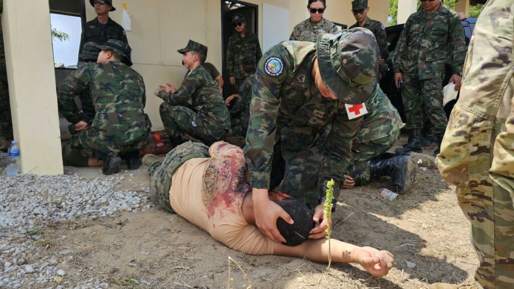 เมื่อ ๒๗ ก.พ.๖๙ กองอำนวยการฝึก การฝึกด้านการแพทย์ การฝึกร่วม / ผสม COBRA GOLD ๒๐๒๖ จัดกำลังพลดำเนินการฝึกการดูแลผู้บาดเจ็บระหว่างเคลื่อนย้าย (En Route Care) ร่วมกับส่วนการแพทย์ ทร. สหรัฐอเมริกา US NAVY ณ สนามฝึก ทร. หมายเลข ๑๕ (หาดยาว) / รพ.อาภากรเกียรติวงศ์ ฐท.สส. / By ข่าวผู้บังคับบัญชา จำนวนคนดู : 0