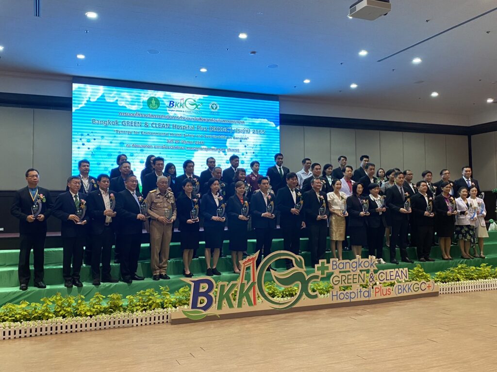 เมื่อ ๒๐ มิ.ย.๖๖ น.อ.ก่อพงศ์ หังสพฤกษ์ ผอ.รพ.ทหารเรือกรุงเทพ พร. และคณะทำงาน GREEN Hospital รพ.ฯ รับมอบโล่รางวัลการดำเนินการด้านอนามัยสิ่งแวดล้อมในสถานพยาบาล Bangkok GREEN & CLEAN Hospital Plus (BKKGC+) ประจำปี ๒๕๖๕ “Synergy for Environmental Health Safety and Sustainability in Bangkok” โดยมี รองศาสตราจารย์ ชัชชาติ สิทธิพันธุ์ ผู้ว่าราชการกรุงเทพมหานคร เป็นประธานพิธีมอบฯ ณ ห้องบางกอก อาคารไอราวัตพัฒนา ศาลาว่าการกรุงเทพมหานคร / รพ.ทหารเรือกรุงเทพ พร. / By ข่าวผู้บังคับบัญชา จำนวนคนดู : 22