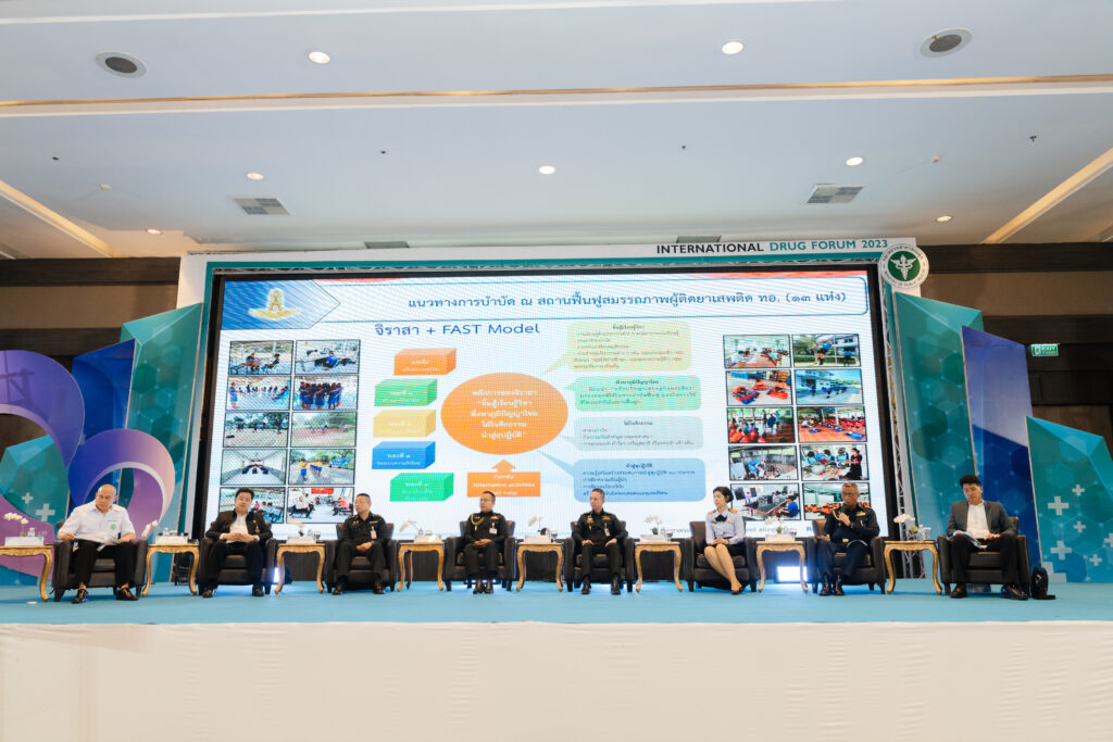 น.อ.หญิง นภัสกมล เพชรนรรัตน์ หก.กภส.รพ.ฯ ผู้แทนกองทัพเรือ ร่วมเสวนาในการประชุมวิชาการ International drug forum ประจำปี ๒๕๖๖ ในหัวข้อการพัฒนาและประเมินคุณภาพ ศูนย์คัดกรอง,สถานพยาบาลยาเสพติด,สถานฟื้นฟูสมรรถภาพผู้ติดยาเสพติด และศูนย์ฟื้นฟูสภาพทางสังคม จัดโดยสำนักงานปลัดกระทรวงสาธารณะสุข ณ ห้องแกรนด์ไดมอนด์ บอนรูม อาคารอิมแพค ฟอรั่ม เมืองทองธานี จว.นนทบุรี โดยมีวัตถุประสงค์เพื่อแลกเปลี่ยนเรียนรู้และประสบการณ์ทางด้านผลงานวิชาการ ระหว่างหน่วยงานที่เกี่ยวข้องและองค์กรระหว่างประเทศ รวมถึงเป็นการสร้างเครือข่ายความร่วมมือ ซึ่งอาจนำไปสู่การพัฒนาต่อยอดผลงานวิชาการด้านยาเสพติดให้มีประสิทธิภาพต่อไป