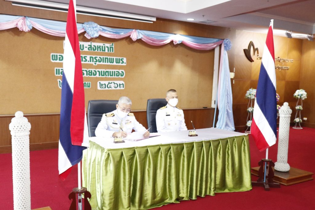 นาวาเอกณัฐ อิศรางกูร ณ อยุธยา ทำพิธีส่งมอบหน้าที่ ผู้อำนวยการ โรงพยาบาลทหารเรือกรุงเทพ กรมแพทย์ทหารเรือ ให้แก่ นาวาเอก นรเสทธ์ เอื้อไพบูลย์ ณ ห้องประชุม1 โรงพยาบาลทหารเรือกรุงเทพ