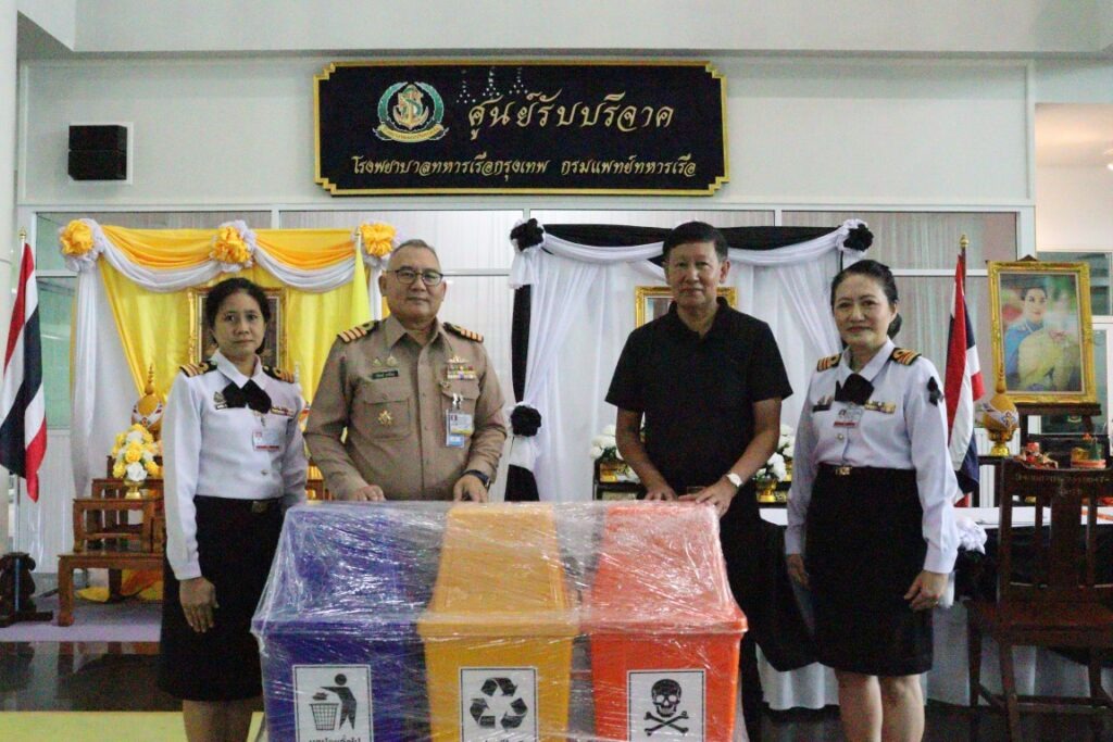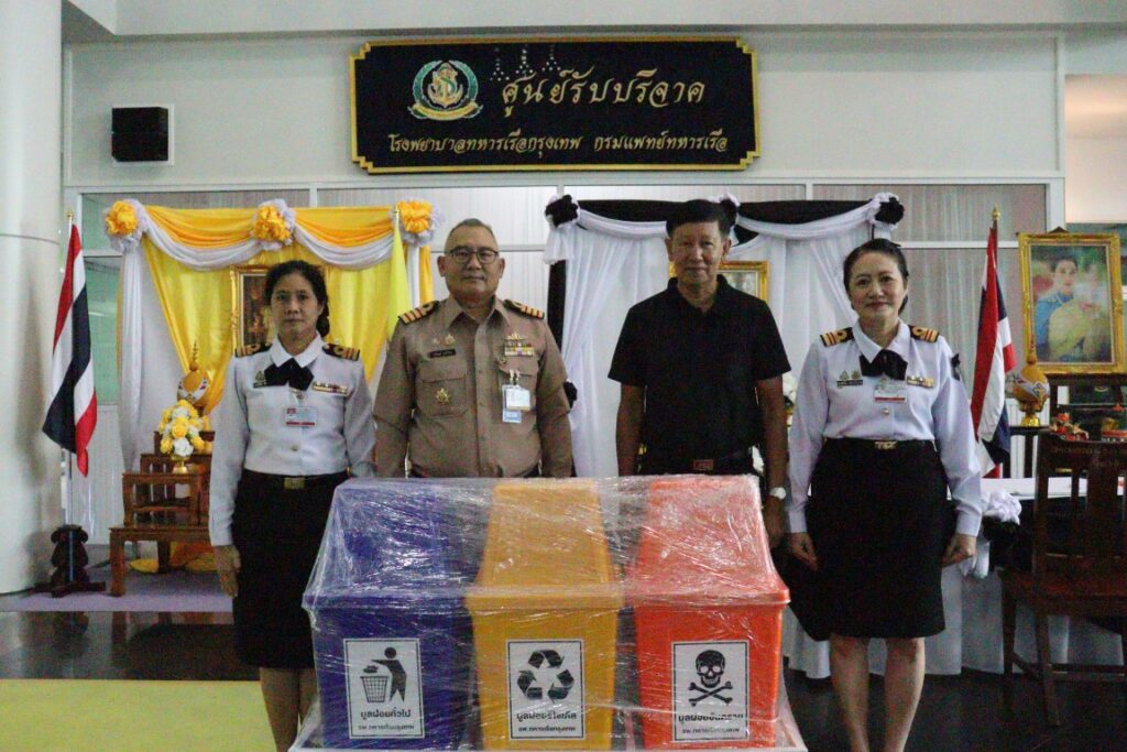 เมื่อ ๔ พ.ย.๖๘ น.อ.บริพนธ์ สุวชิรัตน์ ผอ.รพ.ทหารเรือกรุงเทพ พร. รับมอบชุดคัดแยกขยะจำนวน ๓ ชุด จากคุณสรรพงศ์ บุญศิริ เพื่อส่งเสริมวัฒนธรรมการรักษาสิ่งแวดล้อม และลดปริมาณขยะอย่างยั่งยืนภายใน รพ.ฯ ณ อาคารผู้ป่วยนอก รพ.ทหารเรือกรุงเทพ พร. / รพ.ทหารเรือกรุงเทพ พร. / By ข่าวผู้บังคับบัญชา จำนวนคนดู : 0
