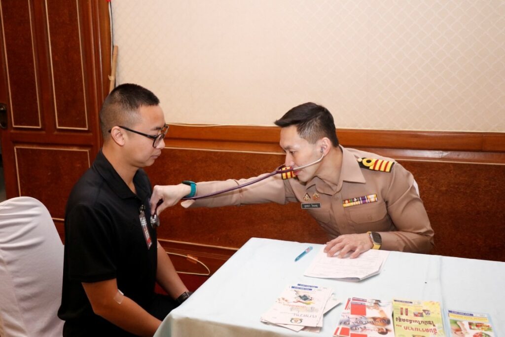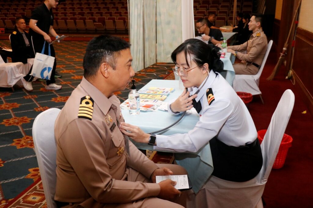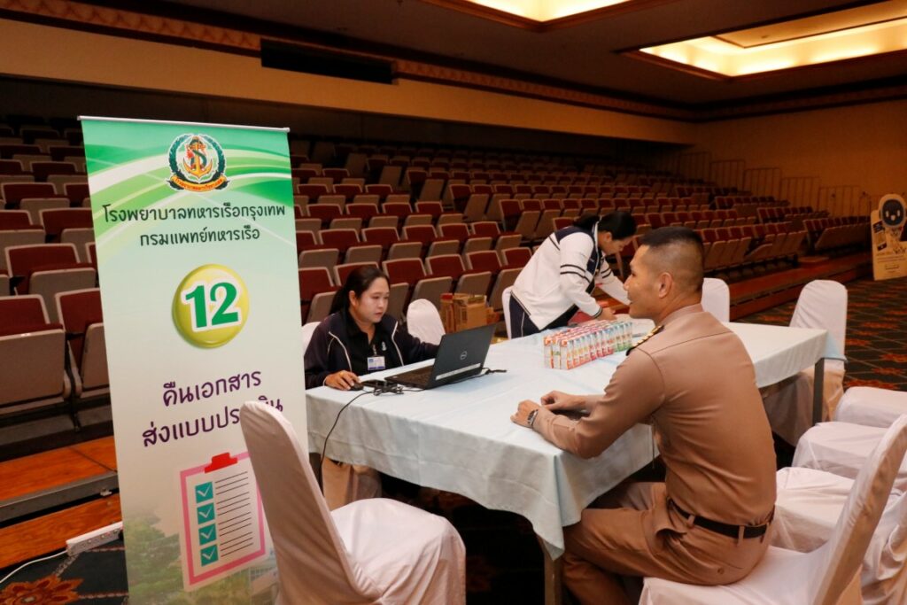 เมื่อ ๙ ม.ค.๖๙ น.อ.บริพนธ์ สุวชิรัตน์ ผอ.รพ.ทหารเรือกรุงเทพ และคณะออกหน่วยตรวจสุขภาพประจำปีเชิงรุก พร้อมให้คำปรึกษาด้านสุขภาพ ประจำปี งป.๒๕๖๙ ให้แก่กำลังพลกรมยุทธศึกษาทหารเรือ (ยศ.ทร.) ณ ห้องประชุมบริพัตร ชั้น ๕ อาคาร สรส.ยศ.ทร. / รพ.ทหารเรือกรุงเทพ พร. / By ข่าวผู้บังคับบัญชา จำนวนคนดู : 0