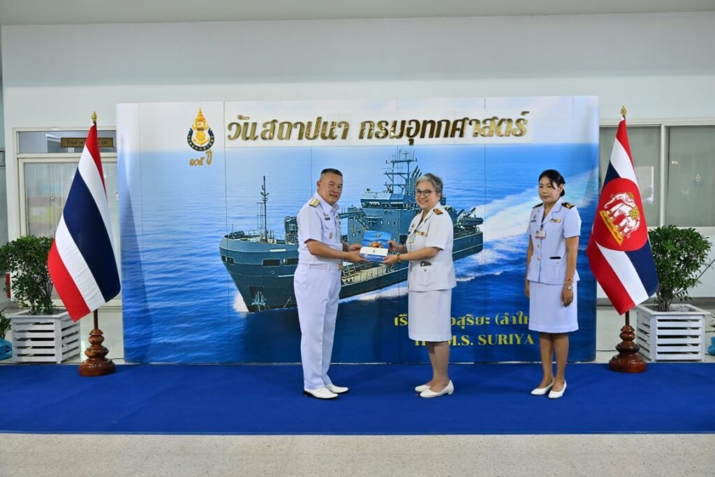 เมื่อ ๑๖ ม.ค.๖๙ น.อ.หญิง วิชชุพร คุปตะวาทิน หัวหน้างานเภสัชกรรม พร้อมคณะ ในนามผู้แทน รพ.ทหารเรือกรุงเทพ พร. มอบกระเช้าแสดงความยินดีแด่ พล.ร.ท.ยอดรัก ศิลปดุริยางค์ เจ้ากรมอุทกศาสตร์ เนื่องในโอกาสวันคล้ายวันสถาปนากรมอุทกศาสตร์ ครบรอบ ๑๐๕ ปี ณ อาคารกองบังคับการ กรมอุทกศาสตร์ / รพ.ทหารเรือกรุงเทพ พร. / By ข่าวผู้บังคับบัญชา จำนวนคนดู : 0