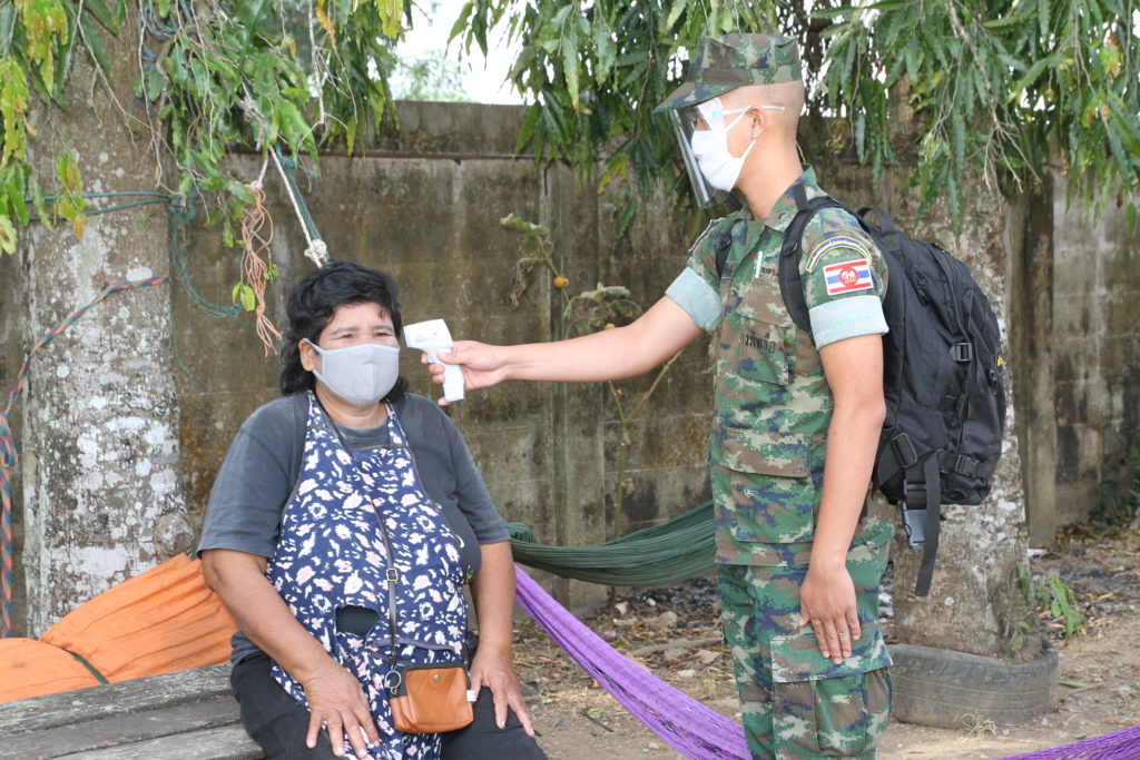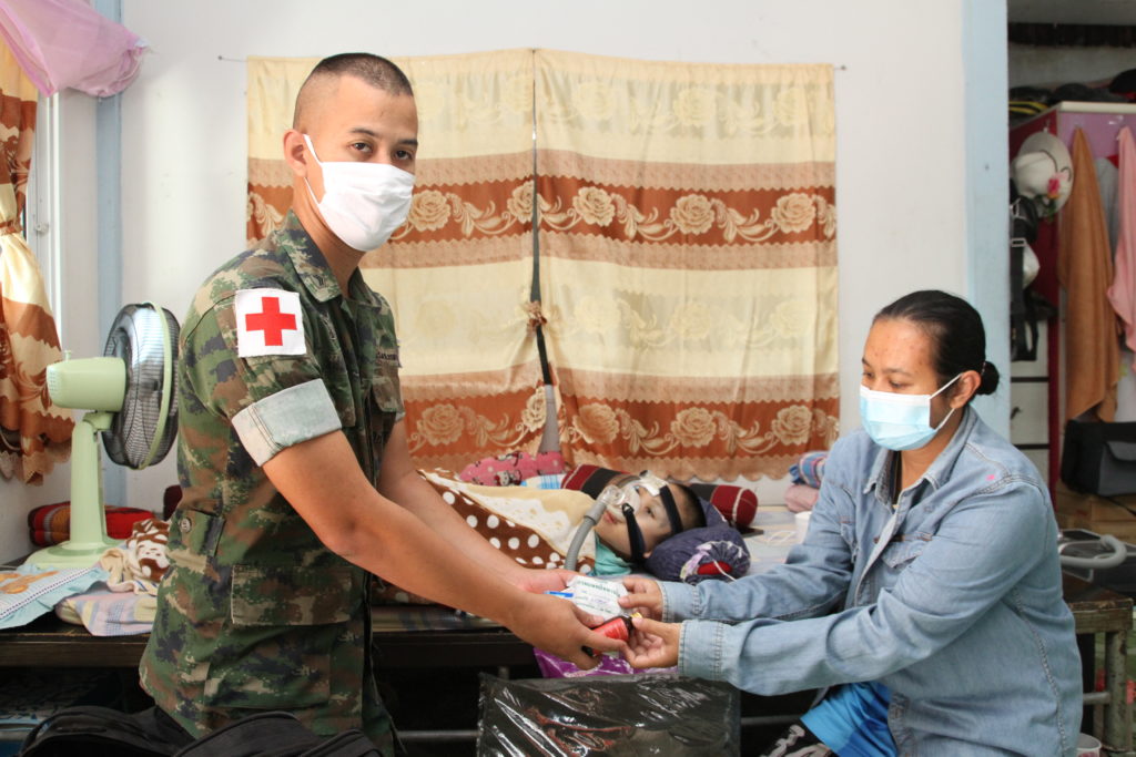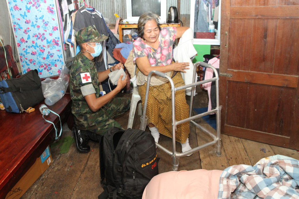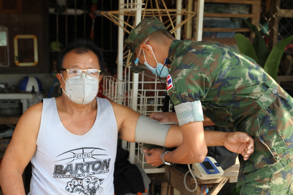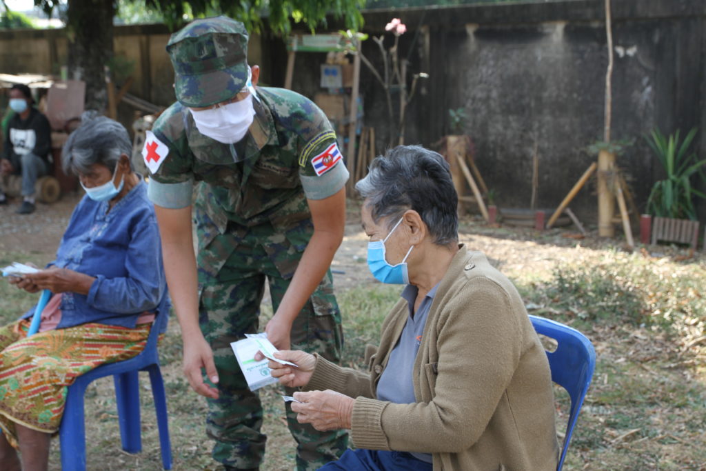 จัดกิจกรรม “กปช.จต. หมอเดินเท้า..เข้าหาชุมชน” โดยจัดกำลังพลจำนวน ๙ นาย (ประกอบด้วย เจ้าหน้าที่ มว.ปจว.กจต. จำนวน ๒ นาย, เจ้าหน้าที่พยาบาล ร้อย.พ.กอง สนช.กจต. จำนวน ๒ นาย, ร้อย.รยบ.ฯ จำนวน ๑ นาย และเจ้าหน้าที่ ส.ทร.๔ จันทบุรี จำนวน ๒ นาย) เข้าเยี่ยมเยียนประชาชน ผู้สูงอายุ และผู้ป่วยติดเตียงในชุมชนย่อยที่ ๑๐ (เนินเอฟเอ็ม) จำนวน ๒๐ ครอบครัว กิจกรรมประกอบด้วย การตรวจวัดอุณหภูมิ การรักษาพยาบาลขั้นต้น การมอบผ้าห่มกันหนาวและข้าวสาร และการให้ความรู้เกี่ยวกับมาตรการป้องกันการติดเชื้อไวรัสโคโรนา 2019 (Covid-19) เพื่อเป็นกำลังใจและบรรเทาความเดือดร้อนในสถานการณ์การแพร่ระบาดของโรคติดเชื้อไวรัสโคโรนา 2019 (Covid-19) การปฏิบัติเป็นไปด้วยความเรียบร้อย ซึ่งประชาชนที่ได้รับการเยี่ยมเยียน รู้สึกยินดีและขอขอบคุณที่กองบัญชาการป้องกันชายแดนจันทบุรีและตราด จัดกิจกรรมดี ๆ เพื่อดูแลประชาชนในครั้งนี้