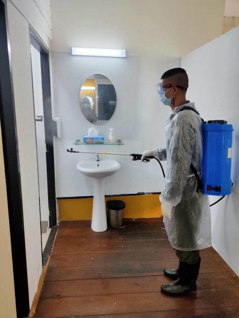 เมื่อวันที่ 27 เม.ย.64 ร้อย.พ.กอง สนช.กจต. ดำเนินการพ่นน้ำยาฆ่าเชื้อที่เรือนรับรอง 1 กปช.จต. (ค่ายตากสิน) อ.เมืองจันทบุรี จว.จันทบุรี ตามมาตรการป้องกัน COVID-19 ผลการดำเนินงาน เป็นไปด้วยความเรียบร้อย / กปช.จต. / By หน่วยขึ้นตรง จำนวนคนดู : 26