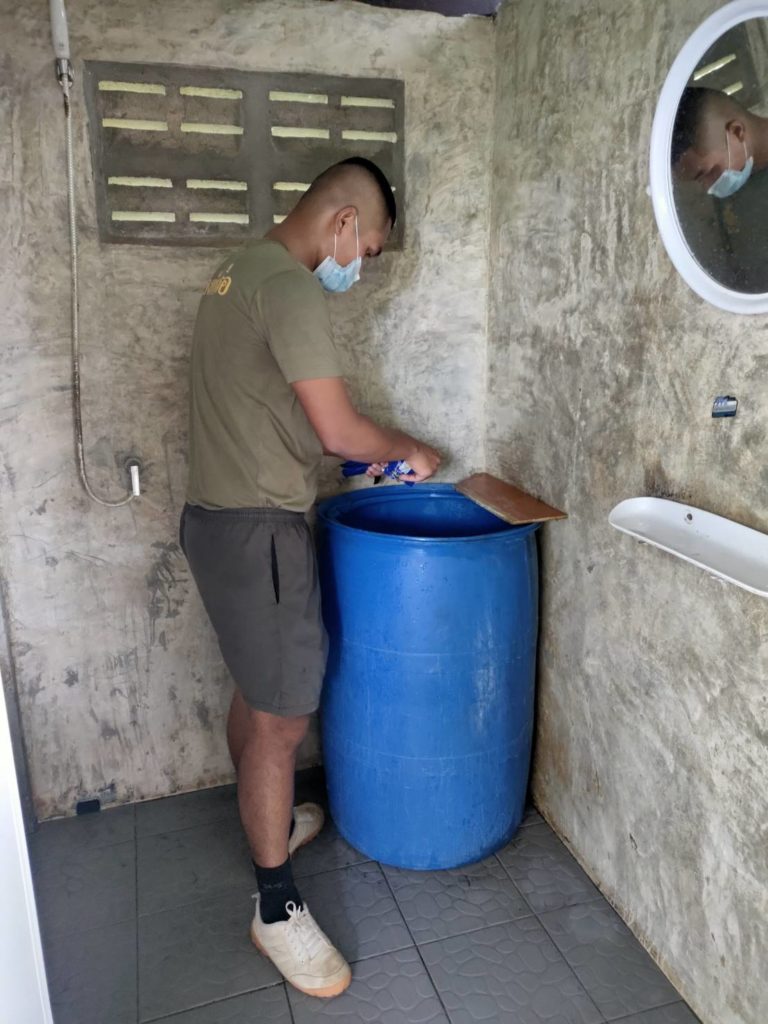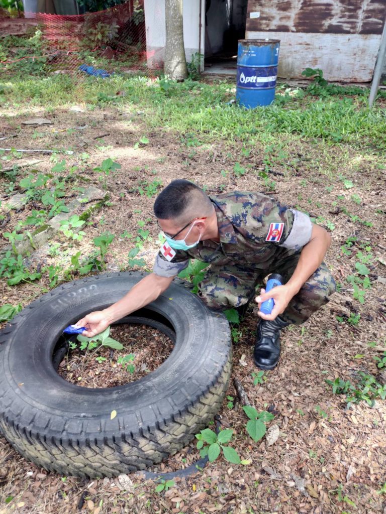 เมื่อวันที่ 27 เม.ย.64 ร้อย.พ.กอง สนช.กจต. ดำเนินการสำรวจลูกน้ำยุงลาย ทำลายแหล่งเพาะพันธุ์ หยอดทรายอะเบท พร้อมทั้งให้คำแนะนำกำลังพลตามหน่วยต่าง ๆ กำชับให้ช่วยกันดูแลความสะอาด รอบ ๆ พื้นที่ไม่ให้มีภาชนะน้ำขัง ที่เป็นแหล่งเพาะพันธุ์ลูกน้ำยุงลายเพื่อป้องกันการเกิดโรคไข้เลือดออกภายในค่ายตากสิน ผลการดำเนินงานเป็นไปด้วยความเรียบร้อย