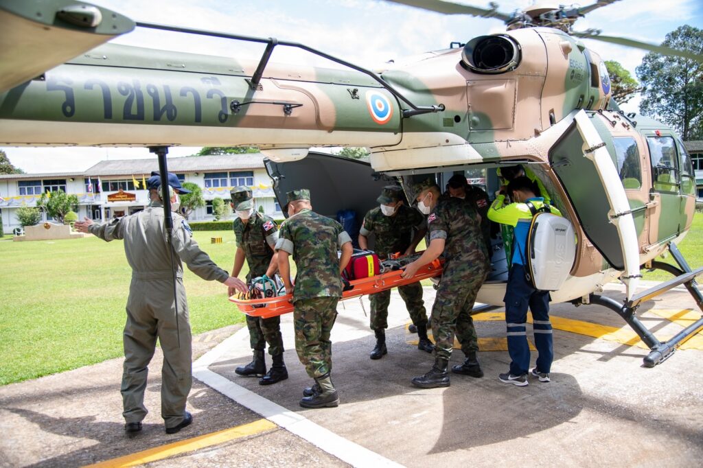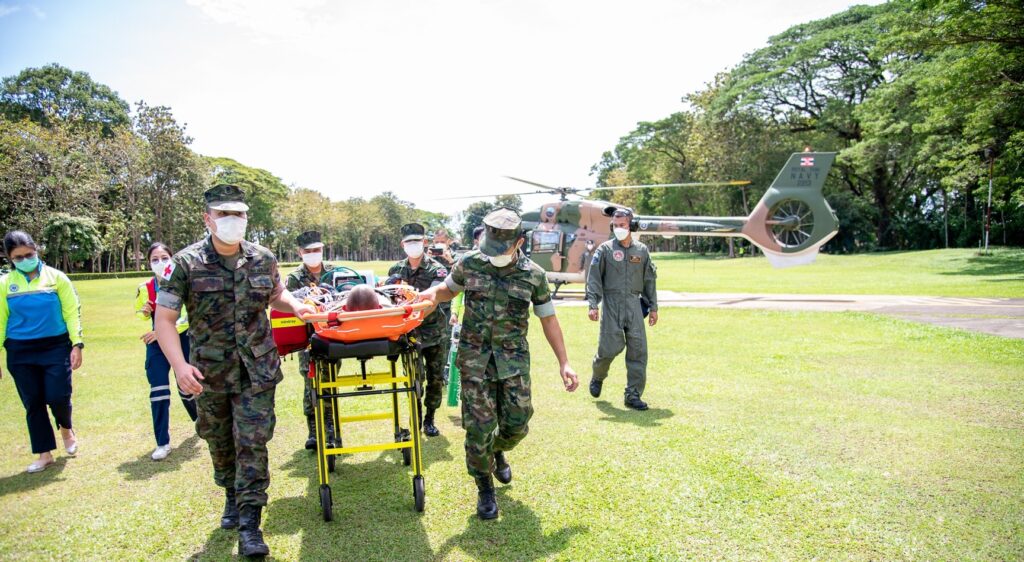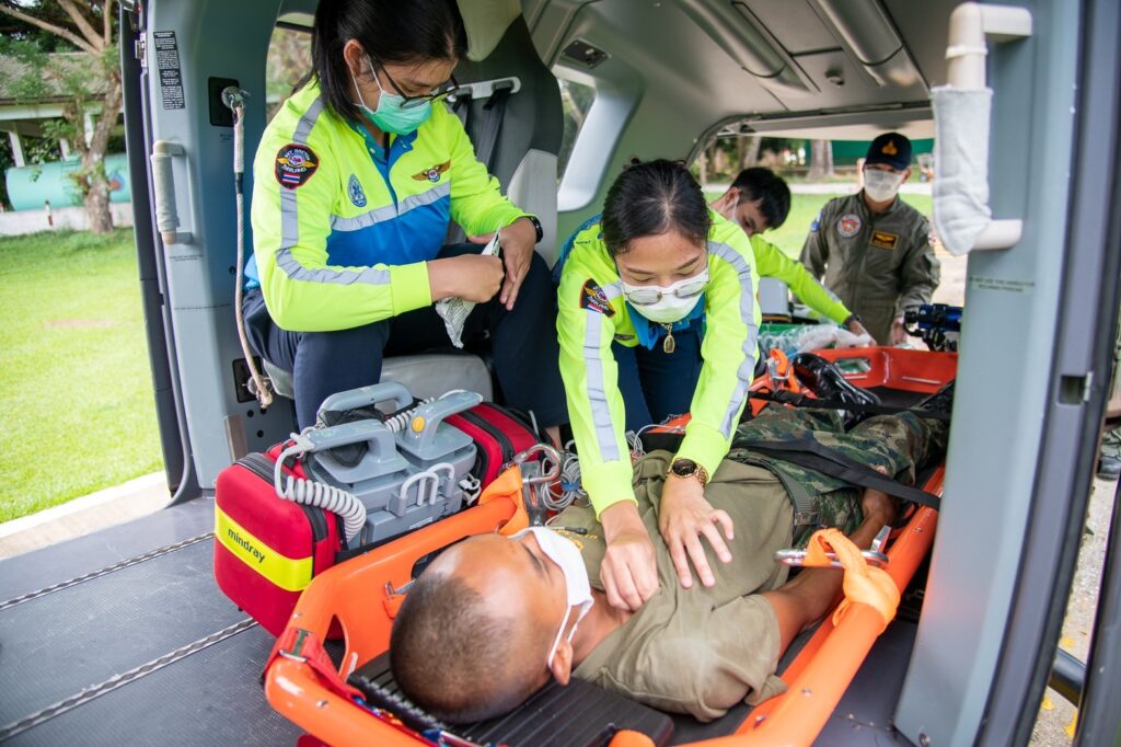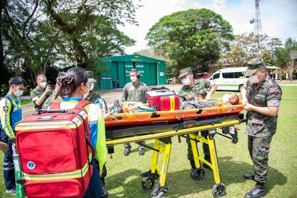 เมื่อ ๒๗ ต.ค.๖๕ เจ้าหน้าที่พยาบาล กองร้อยพยาบาล กองสนับสนุนการช่วยรบ กองกำลังป้องกันชายแดนจันทบุรี-ตราด เข้าร่วมการฝึกลำเลียงผู้ป่วยทางอากาศ ร่วมกับโรงพยาบาลพระปกเกล้าและฝูงบิน ๓๑๔๑ ณ บริเวณลานจอด ฮ.หน้า บก.กปช.จต. ค่ายตากสิน อ.เมืองจันทบุรี จว.จันทบุรี / กปช.จต. / By ข่าวผู้บังคับบัญชา จำนวนคนดู : 12