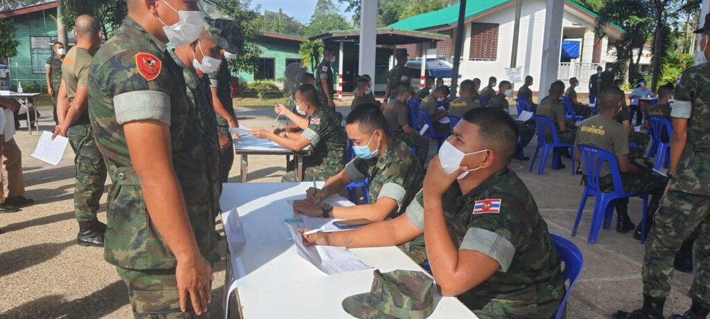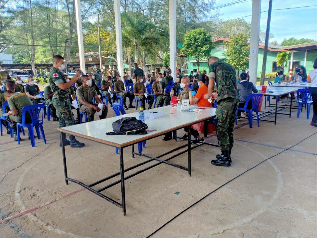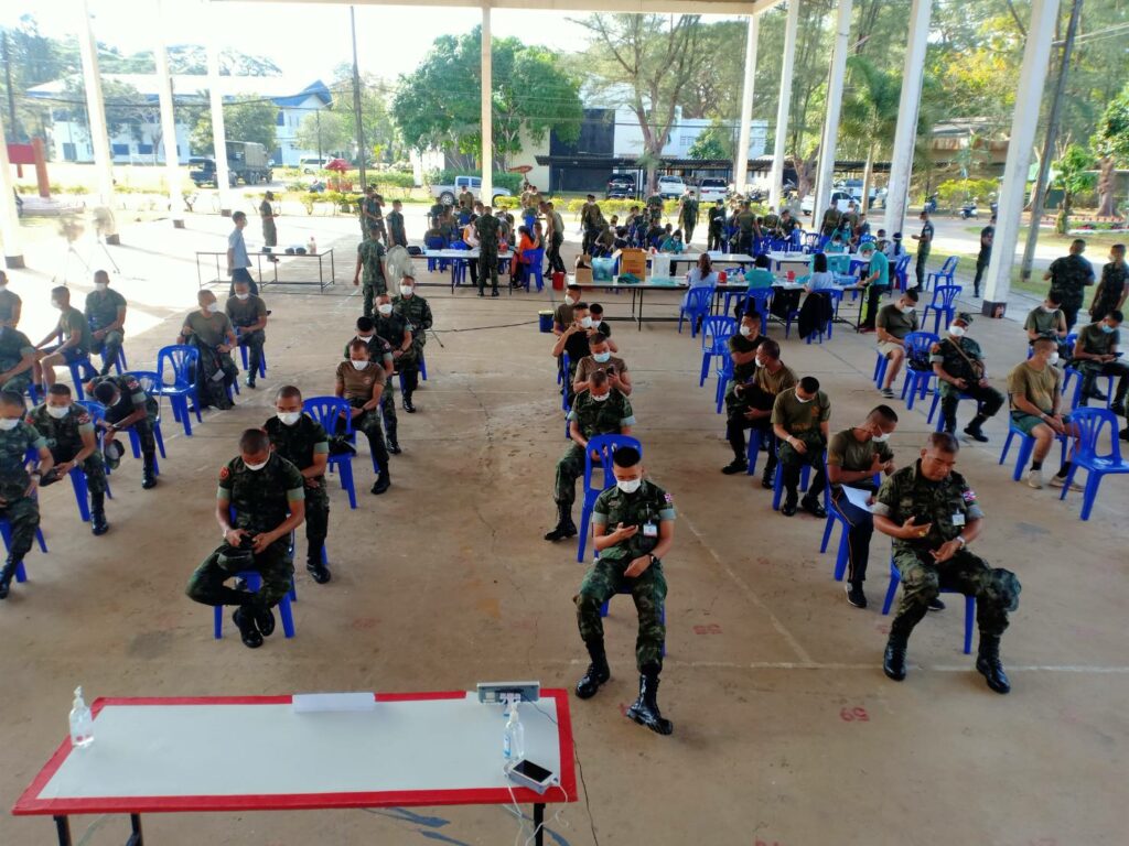 เมื่อ ๒๒ ธ.ค.๖๕ ร้อย.พ.กอง สนช.กจต. ร่วมกับเจ้าหน้าที่ รพ.พระปกเกล้าจันทบุรี (หน่วยบริการฉีดวัคซีน รพ.ส่งเสริมสุขภาพตำบลบางกะจะ) ดำเนินการฉีดวัคซีน Pfizer เข็มกระตุ้น ให้กับกำลังพล พัน.ร.๒.กรม ร.๑ พล.นย. ณ ค่ายตากสิน อ.เมือง จว.จันทบุรี / กปช.จต. / By ข่าวผู้บังคับบัญชา จำนวนคนดู : 3