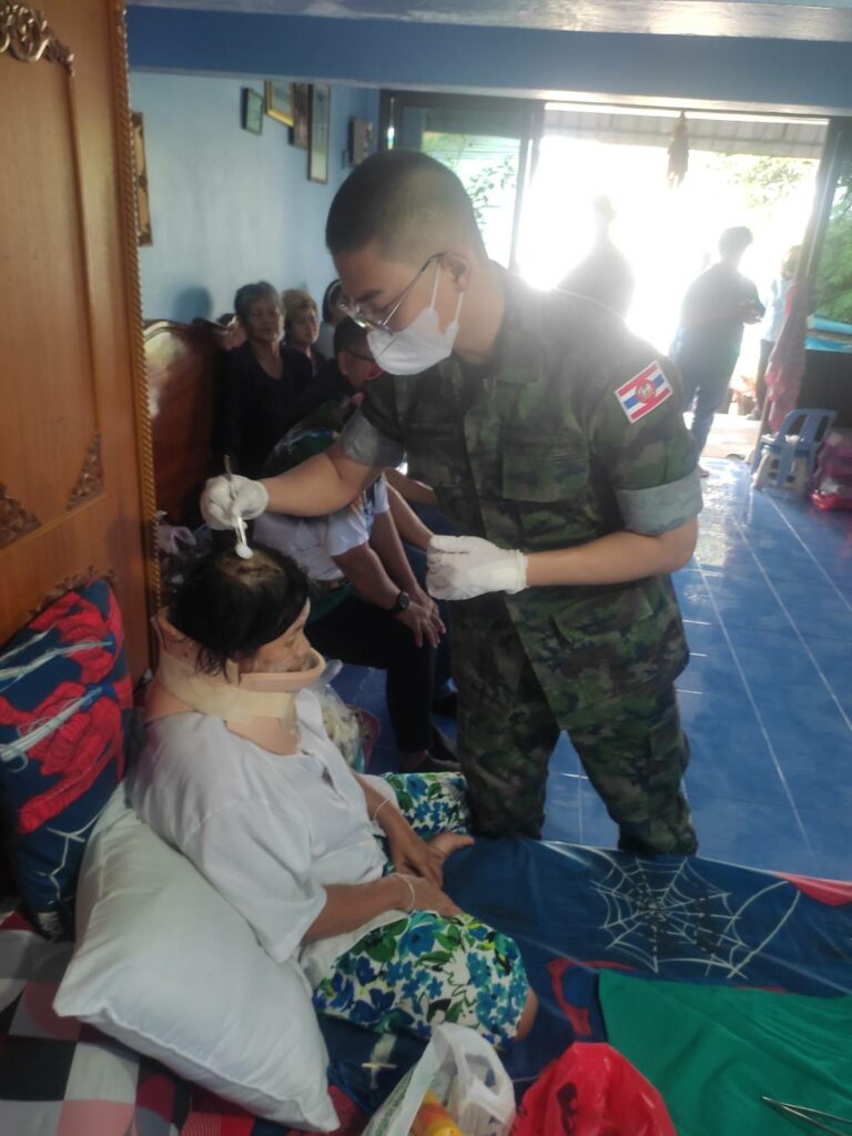 เมื่อ ๐๘ ก.พ.๖๖ น.อ.วิพัฒน์ศักดิ์ ปานรักษา หก.สนช.กจต. และ ร.ต.ติณณ์ พรรณเชษฐ์ ผบ.ร้อย.พ.กอง สนช.กจต. ร่วมกับนายกเทศบาลท่าช้าง จว.จันทบุรี ติดตามอาการผู้ป่วยเจ็บจากงานวันเด็กที่เทศบาลท่าช้าง จว.จันทบุรี (นางนารีรัตน์ คุมคณะ อายุ 59 ปี)