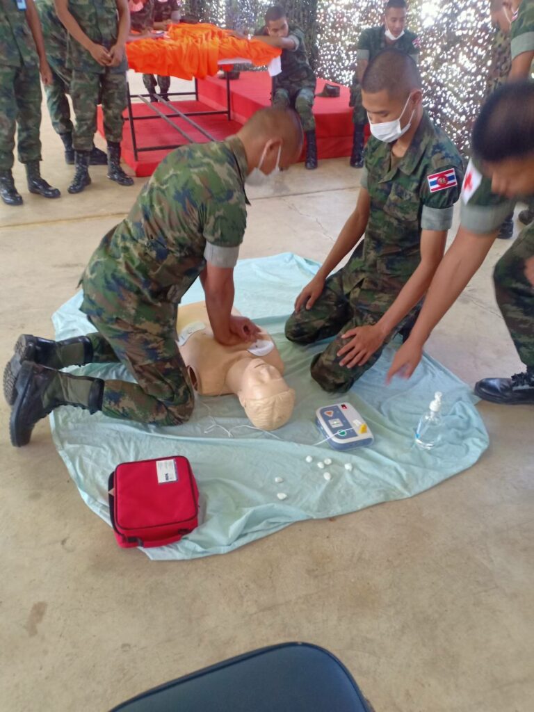 เมื่อ ๒๓ ก.พ.๖๖ ร้อย.พ.กอง สนช.กจต. จัดทีมวิทยากรบรรยายให้ความรู้และฝึกปฏิบัติการกู้ชีพขั้นพื้นฐาน (CPR) และการใช้เครื่องกระตุกหัวใจไฟฟ้าชนิดอัตโนมัติ (AED) ให้แก่กำลังพล กปช.จต. (ร้อย.บก.กจต./ร้อย.รยบ.กอง สนช.กจต.) ณ อาคารโรงจอดรถ ร้อย.รยบ. ฯ ค่ายตากสิน อ.เมืองจันทบุรี จว.จันทบุรี / กปช.จต. / By ข่าวผู้บังคับบัญชา จำนวนคนดู : 6