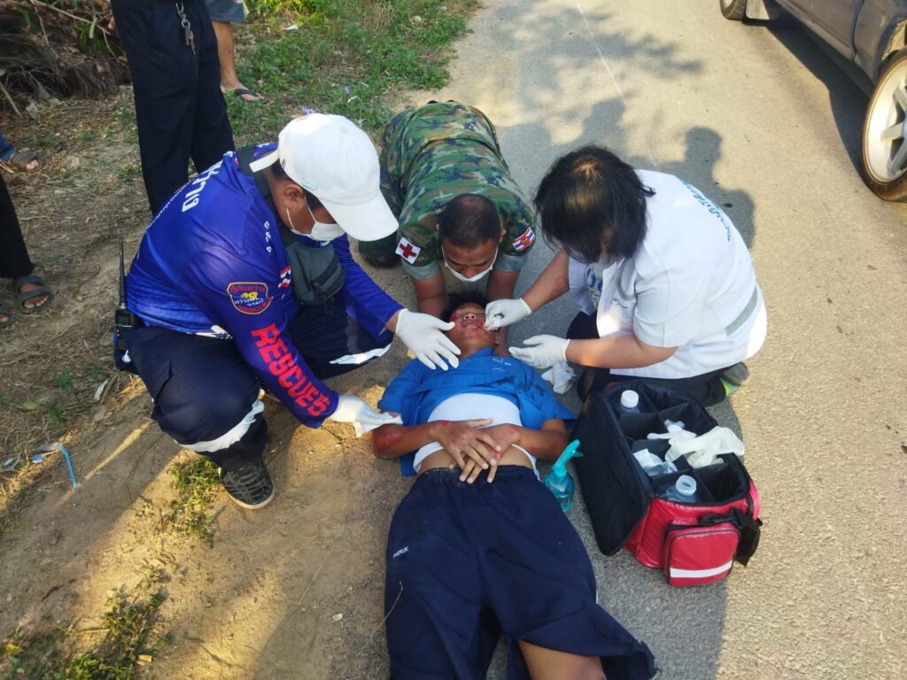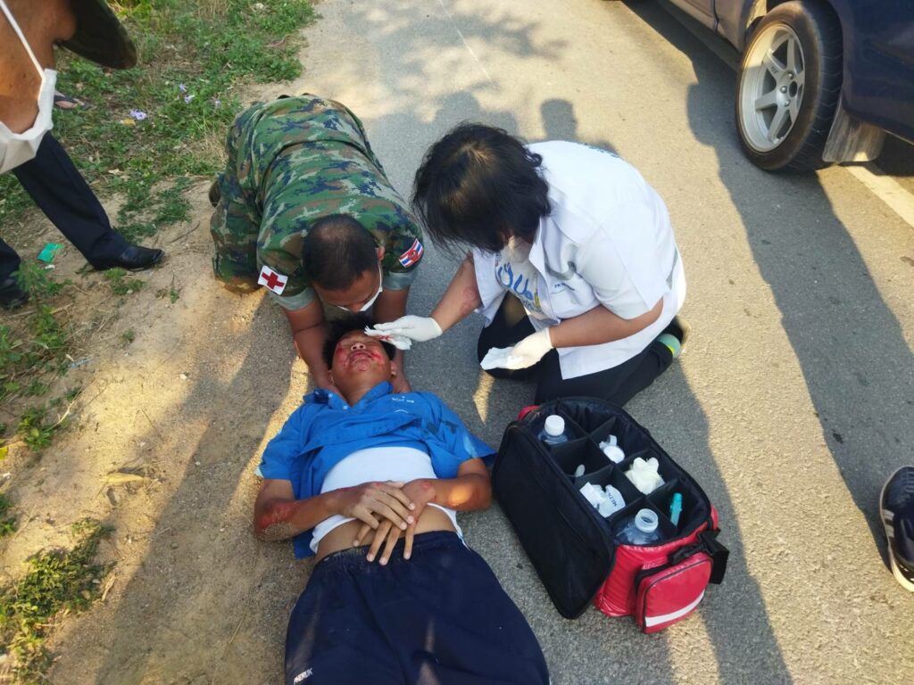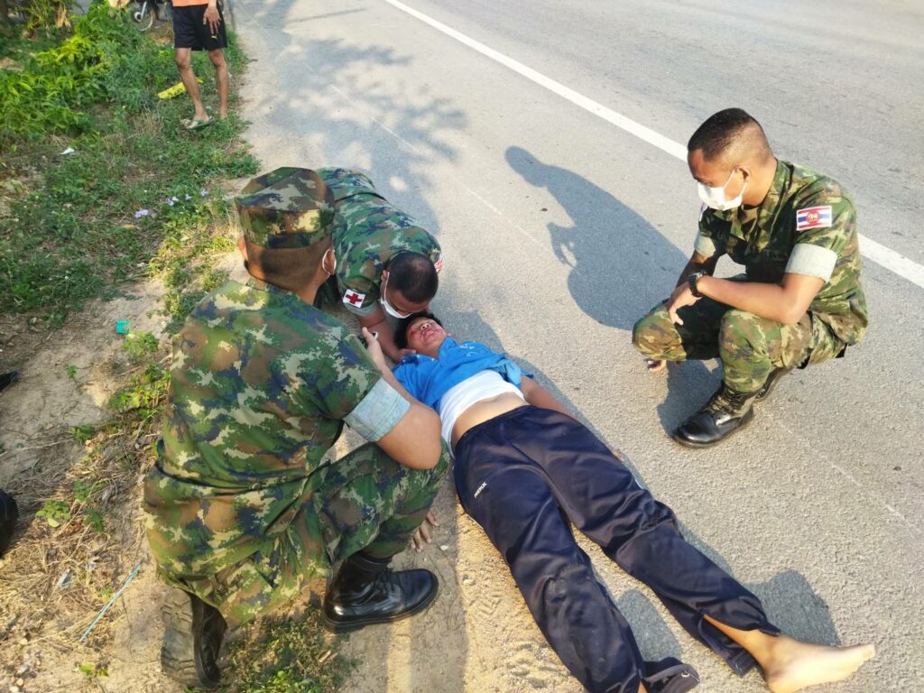 เมื่อ ๑ มี.ค.๖๖ กำลังพลร้อย.พ.กอง สนช.กจต. ให้การช่วยเหลือผู้บาดเจ็บชาย จากอุบัติเหตุจักรยานยนต์ล้มกลางถนนบริเวณพื้นที่ ต.ตะพง อ.แกลง จว.ระยอง ขณะเดินทางไปเบิกยา ณ คลัง รพ.อาภากรเกียรติวงศ์ ฐท.สส. ด้วยการเคลื่อนย้ายผู้บาดเจ็บเข้าพื้นที่ปลอดภัยและให้การปฐมพยาบาลเบื้องต้น / กปช.จต. / By ข่าวผู้บังคับบัญชา จำนวนคนดู : 10