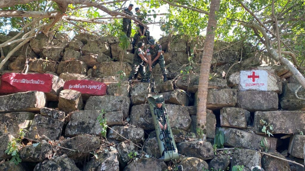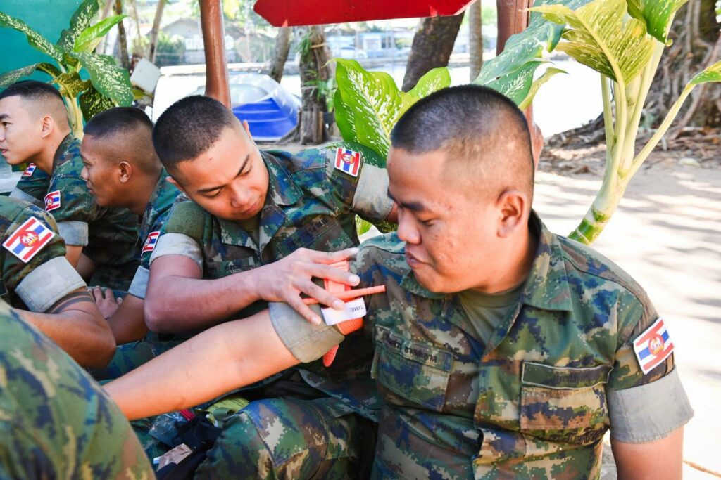 เมื่อ ๑๔ ม.ค.๖๘ ตอน พ.ฉก.นย.๑๘๒ ดำเนินการฝึกทบทวนความรู้ (Unit school) เรื่อง การช่วยชีวิตเชิงยุทธวิธี (TCCC) และการเคลื่อนย้ายผู้บาดเจ็บทางยุทธวิธี (Tactical Evacuation) ให้แก่กำลังพลสังกัด ฉก.นย.๑๘๒ ณ ตอน พ.ฉก.นย.๑๘๒ บ้านหาดเล็ก อ.คลองใหญ่ จว.ตราด / กปช.จต. / By ข่าวผู้บังคับบัญชา จำนวนคนดู : 3