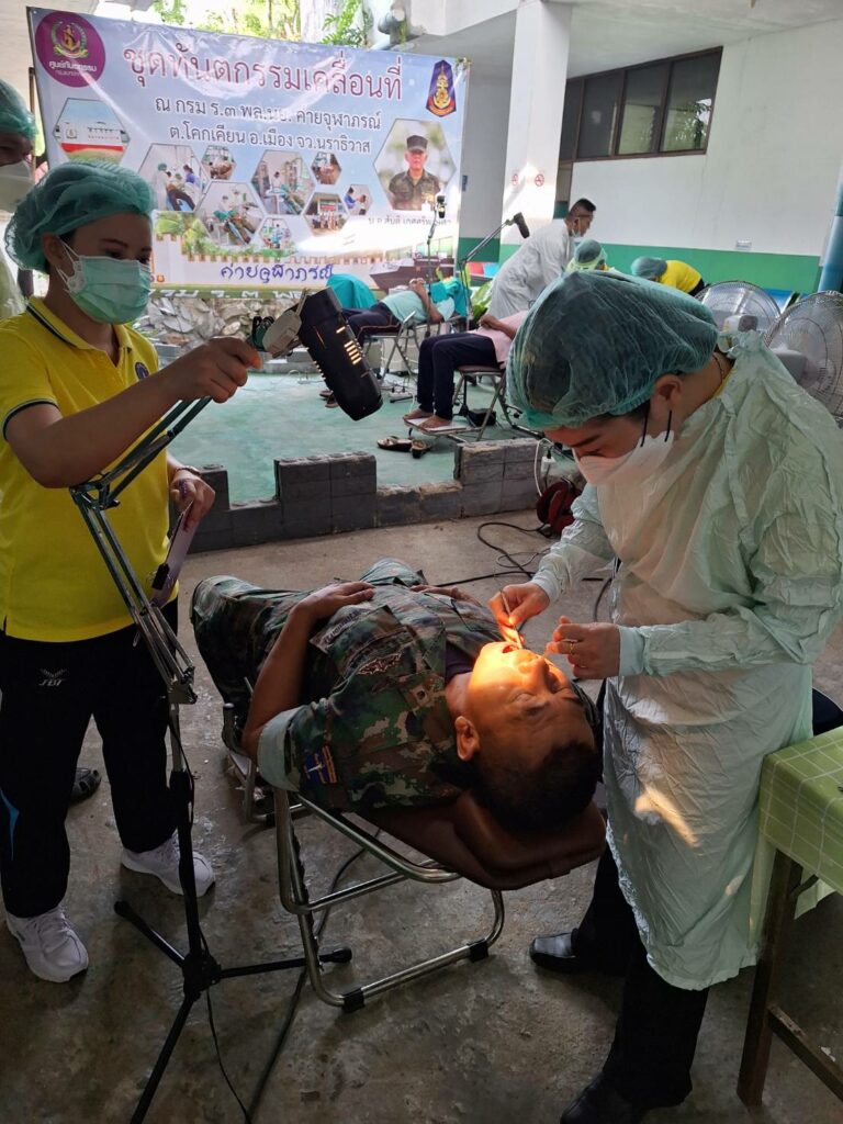 ระหว่าง ๑๕ – ๑๙ ก.ค.๖๗ ศทก.พร. ออกหน่วยให้บริการทันตกรรม ดูแลรักษาทันตกรรม ขูดหินปูน อุดฟันถอนฟัน และอื่นๆ เพื่อให้กำลังพลกองทัพเรือมีทันตสุขภาพที่ดี มีสุขภาพเหมาะสมในการปฎิบัติหน้าที่ ตามภารกิจกองทัพเรือ ในพื้นที่ห่างไกล ลดความเสี่ยงการเกิดภาวะฉุกเฉินทางทันตกรรม โดยมี น.ท.หญิงนริศรา เต็มวานิช ทันตแพทย์ กองทันตกรรมที่ ๑ ศทก.พร. และคณะ ออกหน่วยในครั้งนี้ด้วยฯ ณ ฉก.นย.ภต. ค่ายจุฬาภรณ์ อ.เมือง จว.นราธิวาส