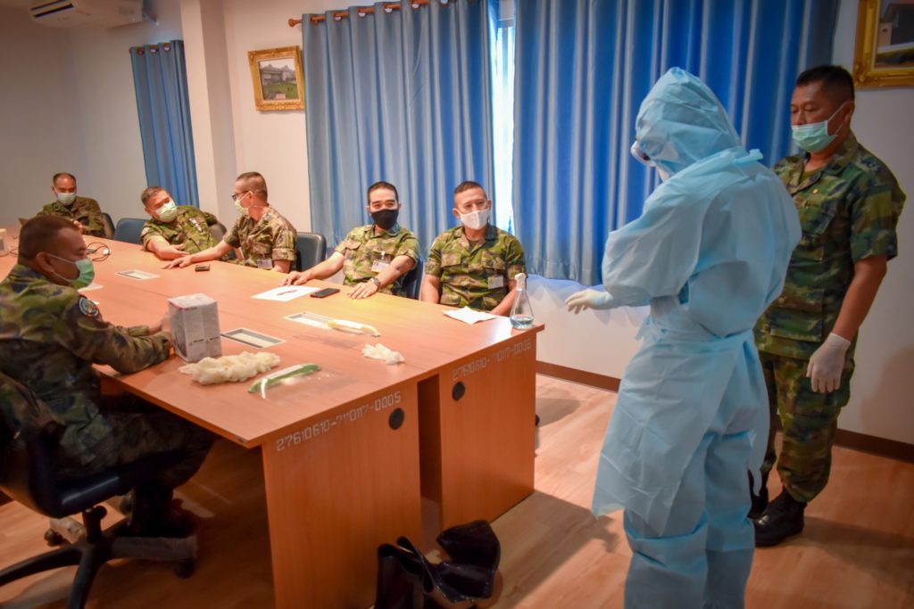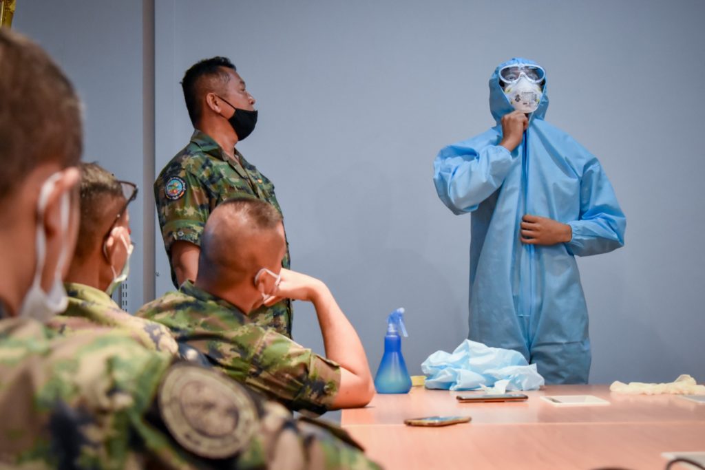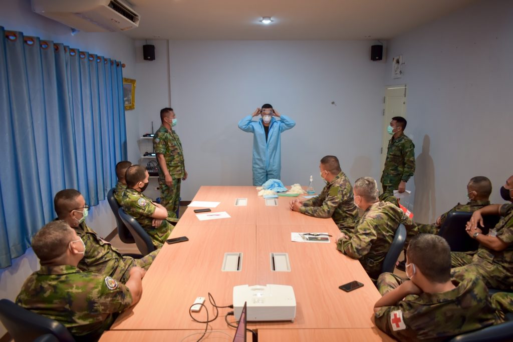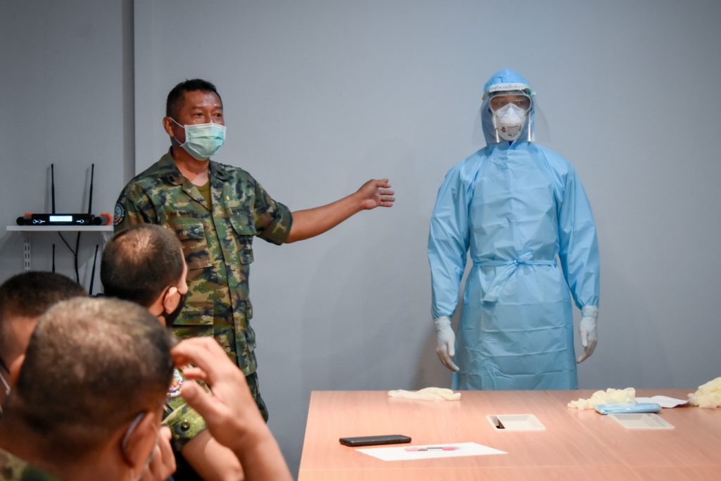 กองพันพยาบาล กรมสนับสนุน หน่วยบัญชาการต่อสู้อากาศยานและรักษาฝั่ง จัดการอบรม สาธิต และฝึกซ้อม การสวมอุปกรณ์ป้องกันส่วนบุคคล (Personal Protective Equipment : PPE) ให้กับกำลังพลในหน่วย เพื่อความพร้อมในการปฏิบัติงานด้านการคัดกรอง ป้องกัน และควบคุมโรคไวรัสโคโรน่า (Covid-19) ระหว่างวันที่ ๘ – ๑๑ ก.พ.๖๔ ณ ห้องประชุม พัน.พ.กรม สน.สอ.รฝ. / พัน.พ.กรม สน.สอ.รฝ / By admin จำนวนคนดู : 39