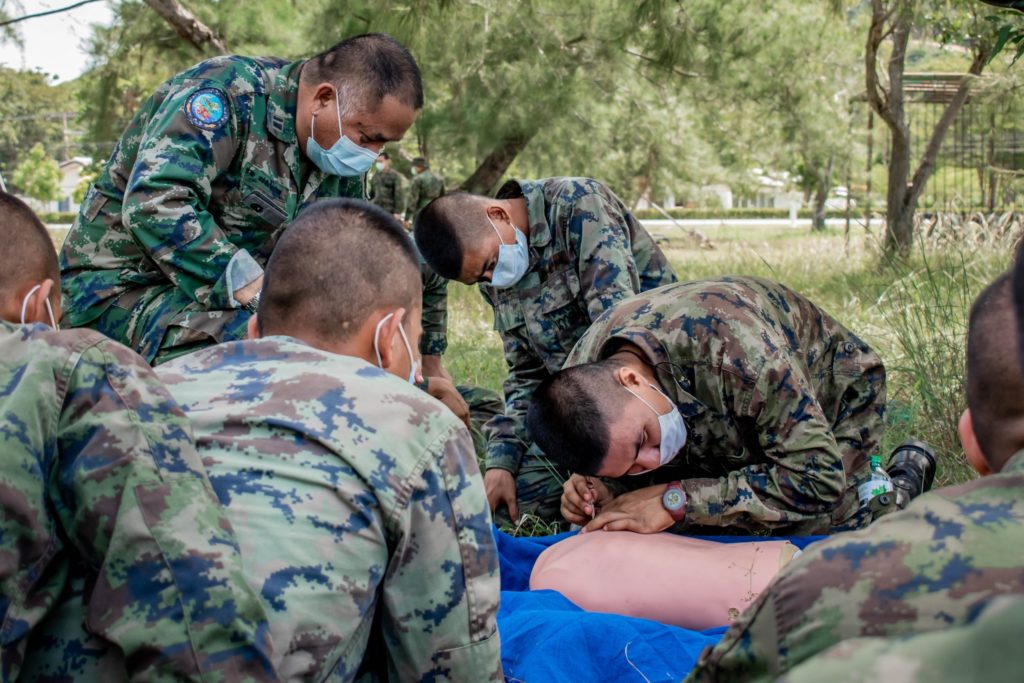 เมื่อวันที่ 9-12 ส.ค.64 น.ท.พิชเยนทร์ ศิลป์ศรีกุล ผบ.พัน.พ.กรม สน.สอ.รฝ. พร้อมด้วยคณะครูฝึกการช่วยชีวิตเชิงยุทธวิธี พร. ดำเนินการฝึกหลักสูตรการช่วยชีวิตเชิงยุทธวิธี ในการฝึกเตรียมกำลังสับเปลี่ยน ฉก.นย.ทร. ฉก.นย.ภต. ณ ค่ายพระมหาเจษฎาราชเจ้า กรมทหารราบที่ 1 กองพลนาวิกโยธิน อ.สัตหีบ จ.ชลบุรี / พัน.พ.กรม สน.สอ.รฝ / By หน่วยขึ้นตรง จำนวนคนดู : 20