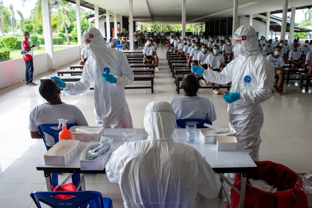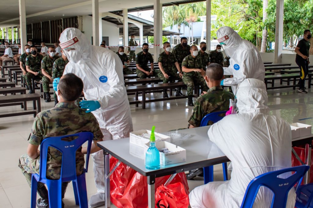 เมื่อ 15 ก.ย.64 พัน.พ.กรม สน.สอ.รฝ. ได้ดำเนินการเก็บสารคัดหลั่ง ตรวจหาเชื้อ COVID-19 ให้กับครูฝึก ผู้ช่วยครูฝึกและพลทหารกองประจำการ ผลัดที่ ๒/๒๕๖๔ ด้วยชุดตรวจแบบเร่งด่วน (Rapid antigen test) ครั้งที่ 3 ก่อนแยกหน่วย ณ ศูนย์การฝึก สอ.รฝ. / พัน.พ.กรม สน.สอ.รฝ / By หน่วยขึ้นตรง จำนวนคนดู : 18
