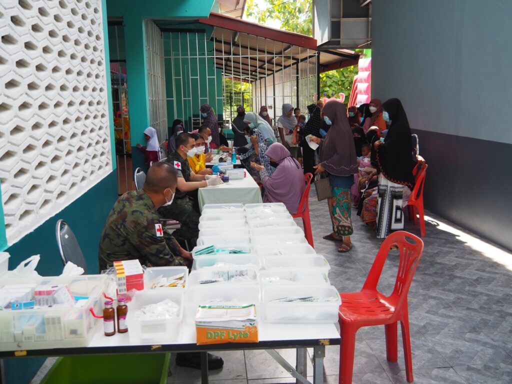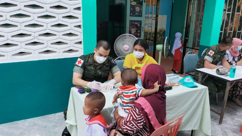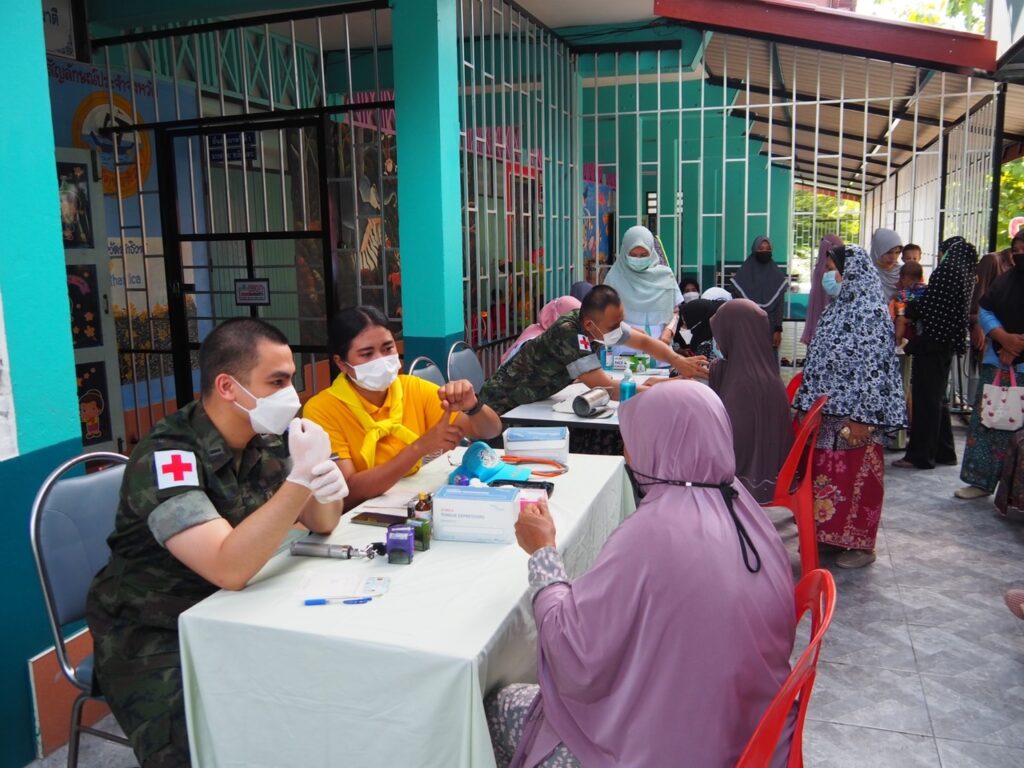 เมื่อ ๑๕ มิ.ย.๖๕ เวลา ๐๙๐๐ – ๑๒๐๐ ร.ต.ธนพงศ์ นงค์นวล ห้วหน้าส่วนชุดแพทย์เคลื่อนที่ ชพค.ฉก.นย.ทร.(ค่ายจุฬาภรณ์) นำกำลังพลพร้อมยาและเวชภัณฑ์ ออกบริการ ตรวจโรค/จ่ายยา ให้กับประชาชนในพื้นที่รับผิดชอบของ ฉก.นย.ทร. ณ โรงเรียนบ้านกาเยาะมาตี ต.กาเยาะมาตี อ.บาเจาะ จว.นราธิวาส ตามโครงการนาวิก นาวี สัญจร เพื่อเสริมสร้างความเข้าใจ และให้การบริการผู้ที่มีปัญหาด้านสุขภาพ ในกิจกรรมมีการแสดงดนตรี ตัดผมแจกไอศครีม ขนม และชุดแพทย์ให้บริการ โดยมีผู้เข้ารัยการตรวจรักษาโรค จำนวน ๑๐๖ ราย ผลการปฏิบัติประชาชนพึงพอใจในการจัดกิจกรรมในครั้งนี้โดยเป็นไปด้วยความเรียบร้อย / พัน.พ.กรม สน.สอ.รฝ / By ข่าวผู้บังคับบัญชา จำนวนคนดู : 15
