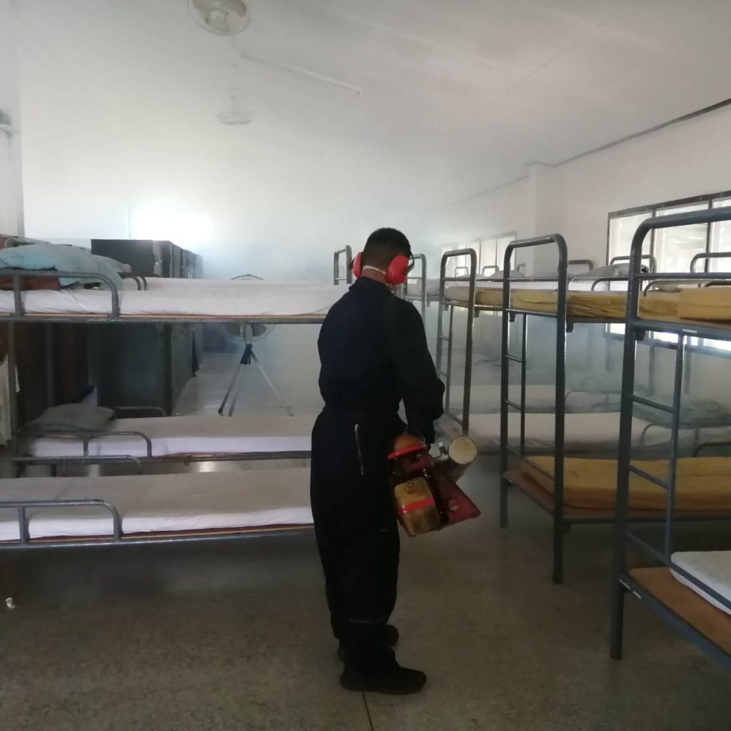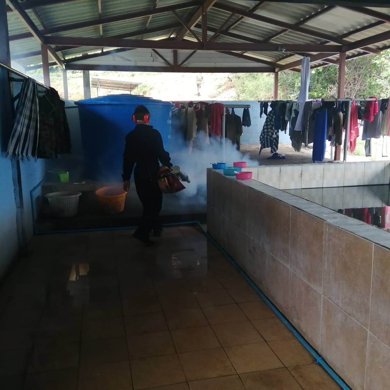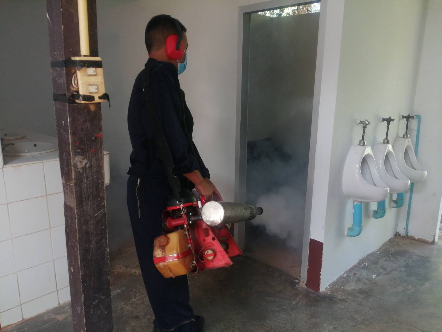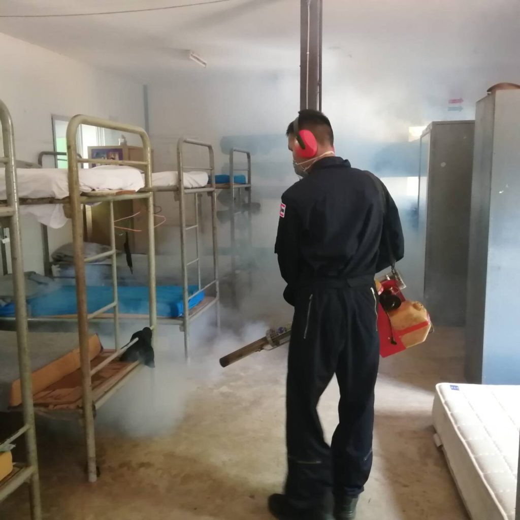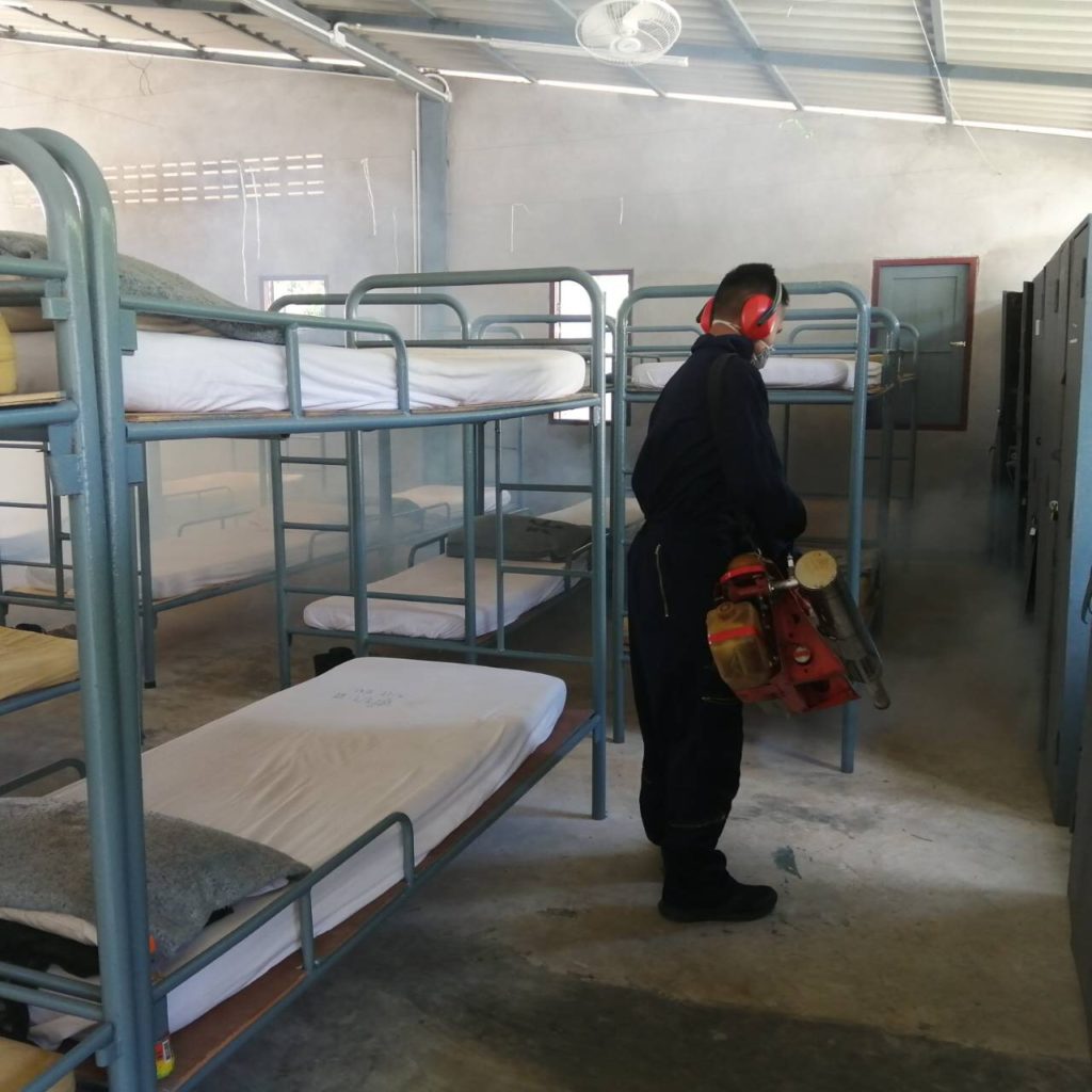 ๑๑ ส.ค. ๖๓ เจ้าหน้าที่เวชกรรมป้องกัน กองพันพยาบาล กรม สน.สอ.รฝ. ดำเนินการพ่นหมอกควันกำจัดยุง ให้กับ บก.ศสร., รปภ.ประตูทางรถไฟ, รปภ.ประตูชายทะเล / พัน.พ.กรม สน.สอ.รฝ / By แผนกเวชนิทัศน์ กวส.พร. เจ้าหน้าที่เวชกรรมป้องกัน กองพันพยาบาล กรม สน.สอ.รฝ. ดำเนินการพ่นหมอกควันกำจัดยุง ให้กับ บก.ศสร., รปภ.ประตูทางรถไฟ, รปภ.ประตูชายทะเล อำเภอ สัตหีบ จังหวัด ชลบุรี เมื่อวันที่ ๑๑ สิงหาคม ๒๕๖๓ จำนวนคนดู : 70