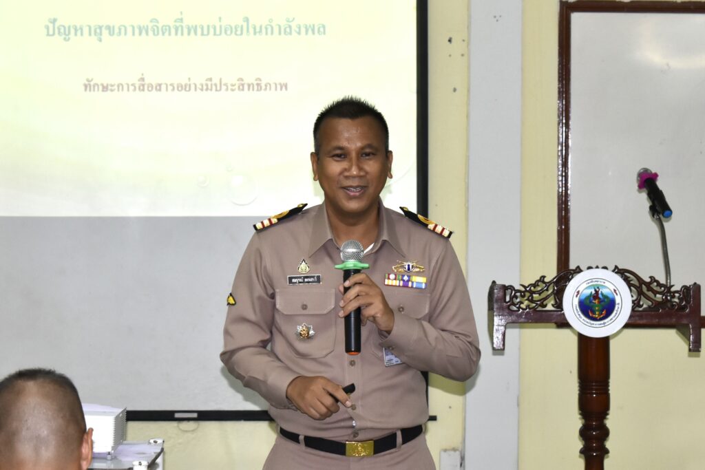 เมื่อ ๒ พ.ย.๖๖ แผนกจิตเวช รพ.อาภากรเกียรติวงศ์ ฐท.สส. บรรยายความรู้ และแนวทางการปฏิบัติ เรื่อง ปัญหาสุขภาพจิตที่พบบ่อยในกำลังพล ให้แก่ กำลังพล พัน.พ.กรม สน.สอ.รฝ. ณ พัน.พ.กรม สน.สอ.รฝ. / พัน.พ.กรม สน.สอ.รฝ / By ข่าวผู้บังคับบัญชา จำนวนคนดู : 6