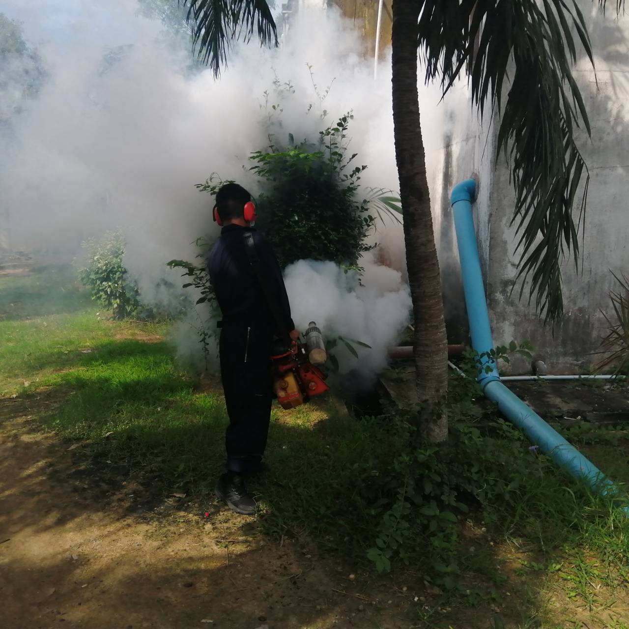 กองพันพยาบาล กรม สน.สอ.รฝ.จัด จนท.เวชกรรมป้องกันฉีดพ่นสารเคมีกำจัดยุงลายป้องกันการวางไข่ และป้องกันการแพร่ระบาดของโรคไข้เลือดออก บริเวณโดยรอบ กรม รฝ.๑ สอ.รฝ. เมื่อวันที่ ๑๘ สิงหาคม ๒๕๖๓