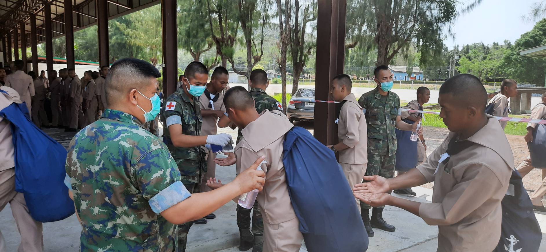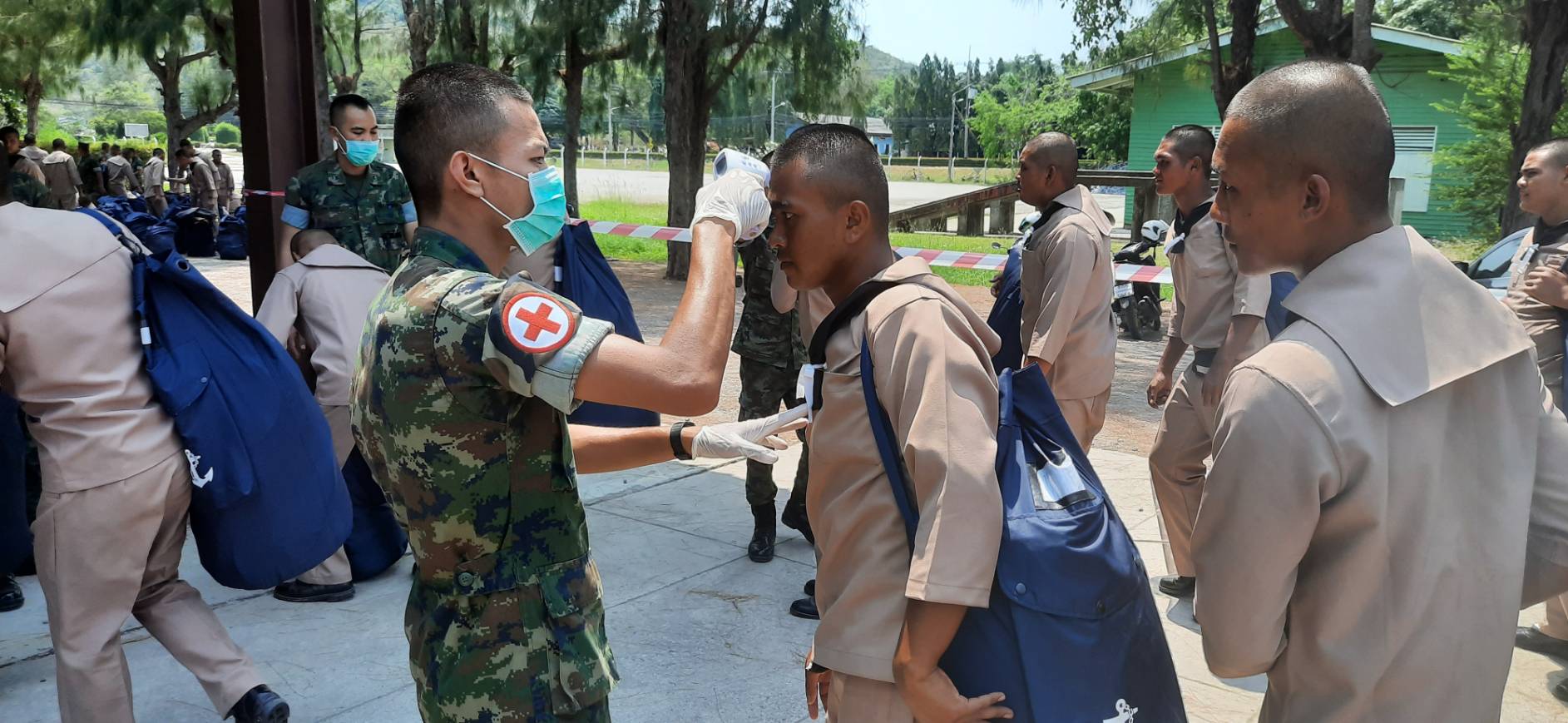 กองพันพยาบาล กรมสนับสนุน กองพลนาวิกโยธิน หน่วยบัญชาการนาวิกโยธิน จัดเจ้าหน้าที่พยาบาลสนับสนุนการคัดกรองโรค COVID-19 ให้กับทหารใหม่ที่ย้ายสังกัดเข้าหน่วยบัญชาการนาวิกโยธิน